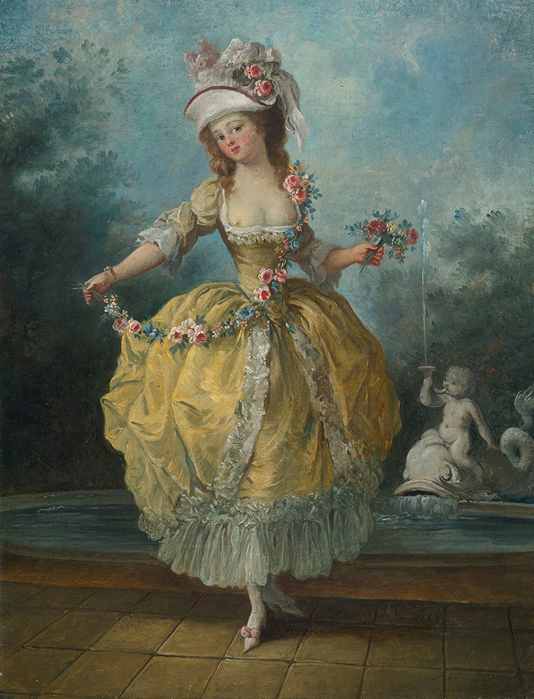 A Young Lady in a Garden, Holding a Garland of Flowers