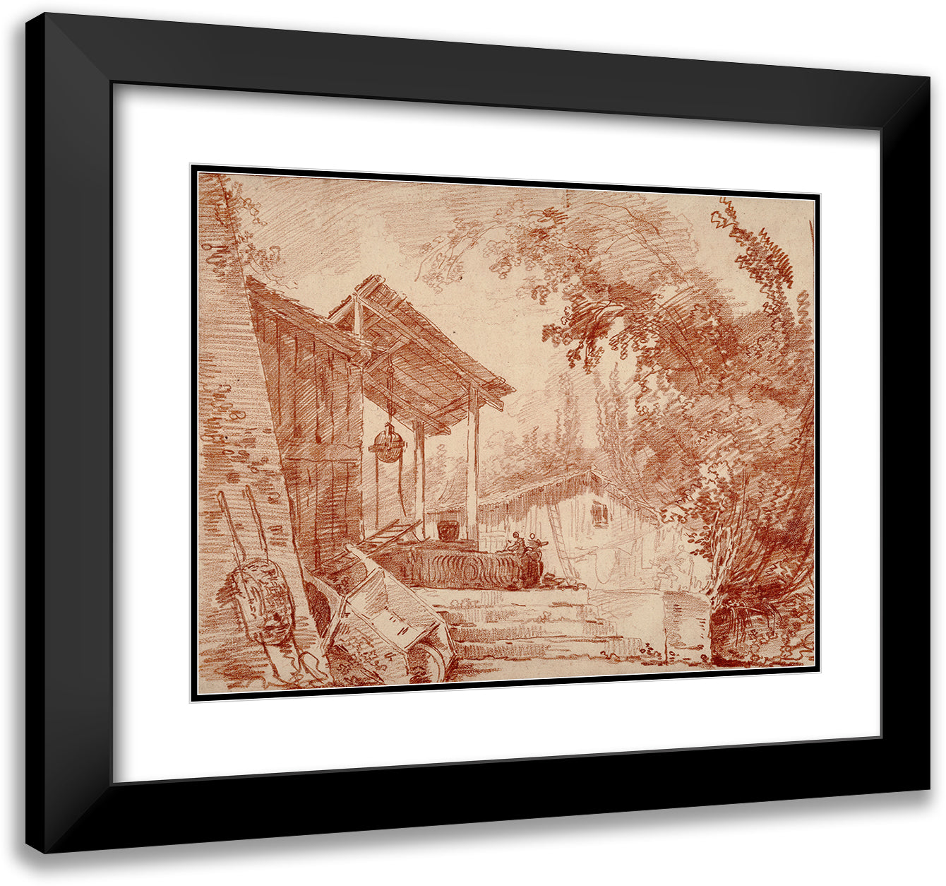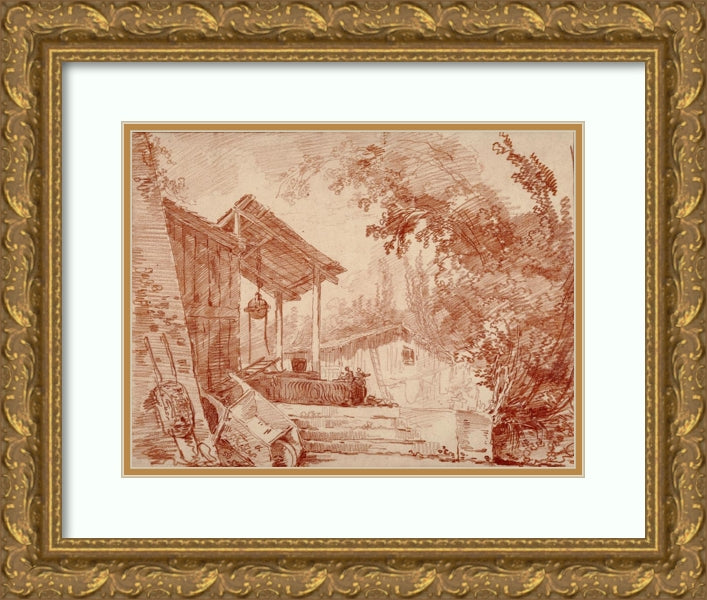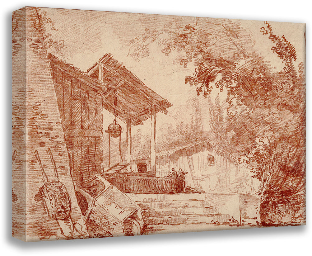 / Farmyard with Two Figures by a Well and a Large Wheelbarrow in the Foreground (1760-1765)