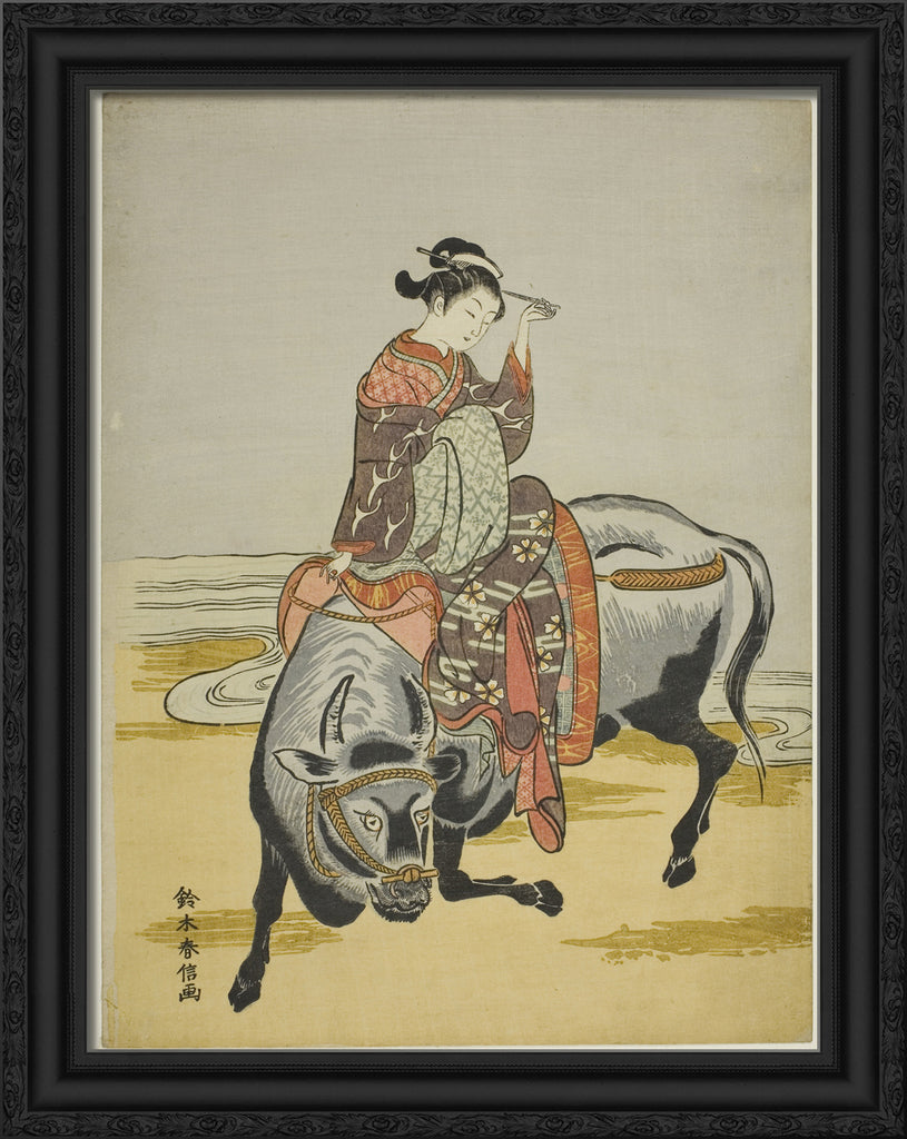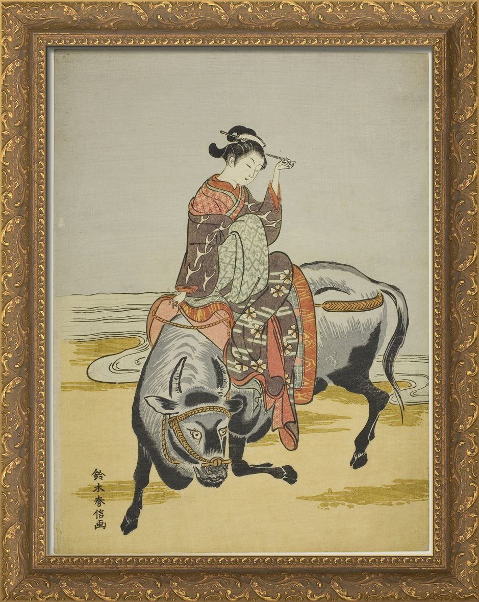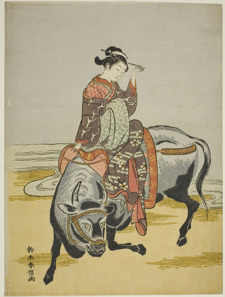 / Courtesan Riding an Ox (parody of Botange Shohaku) by Suzuki Harunobu