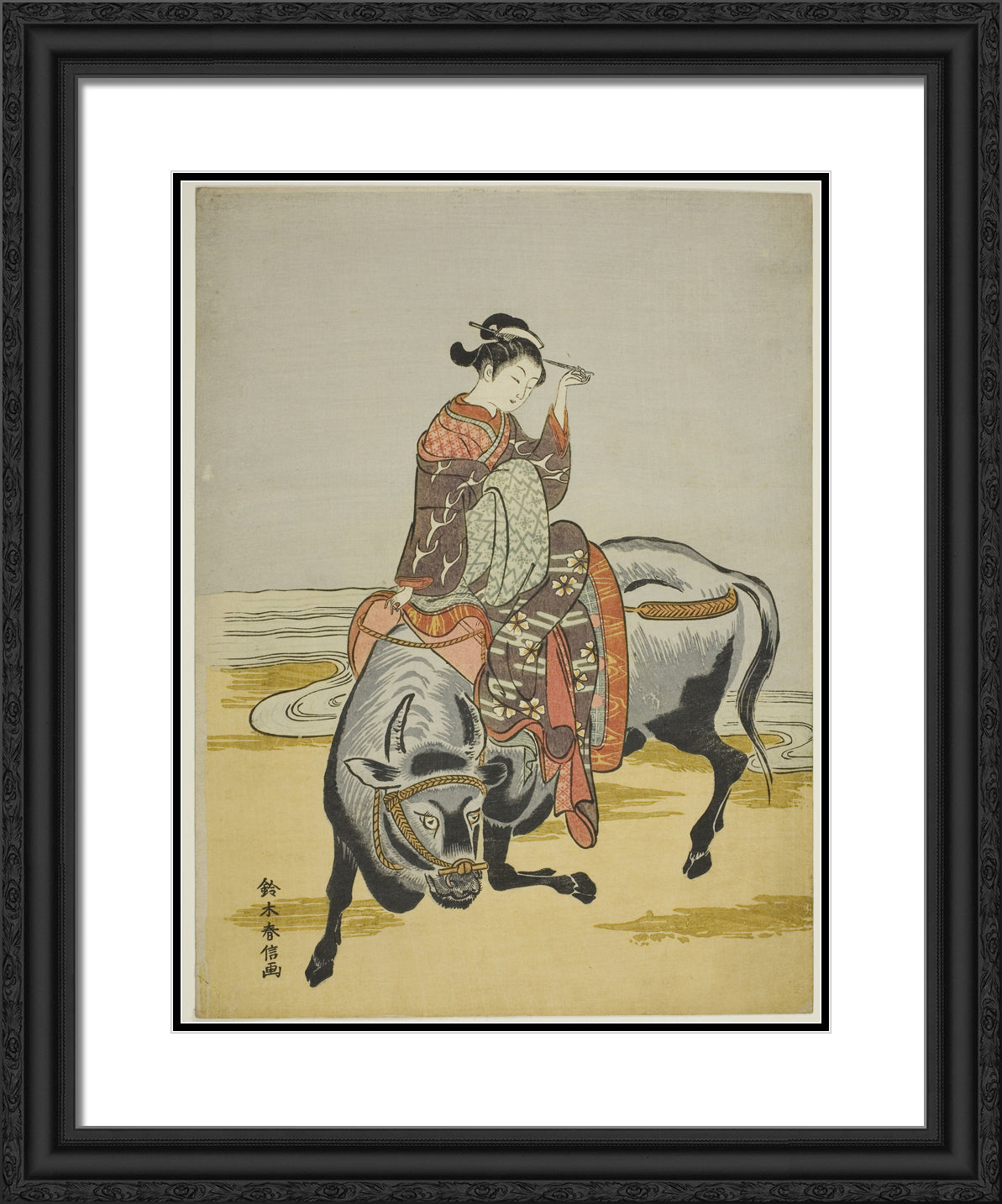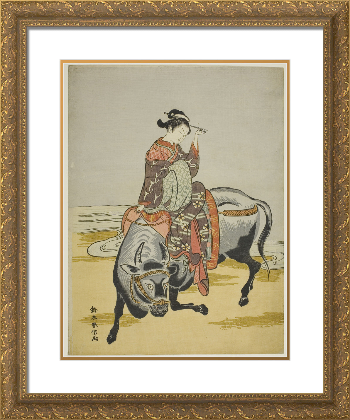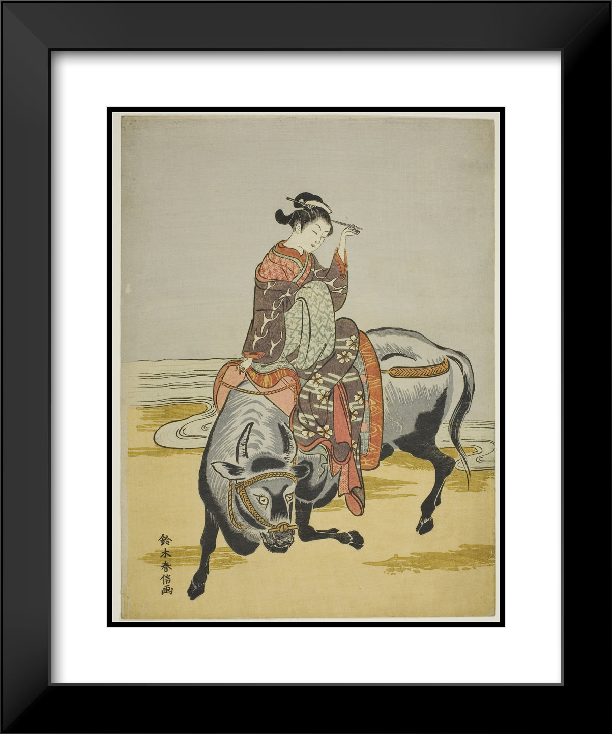 / Courtesan Riding an Ox (parody of Botange Shohaku) by Suzuki Harunobu