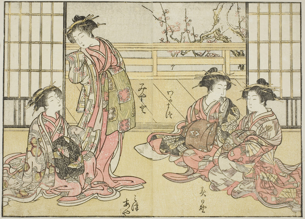 / Courtesans of the Kadotamaya, from the book "Mirror of Beautiful Women of the Pleasure Quarters (Seiro bijin awase sugata kagami)," vol. 1 by Katsukawa Shunsho