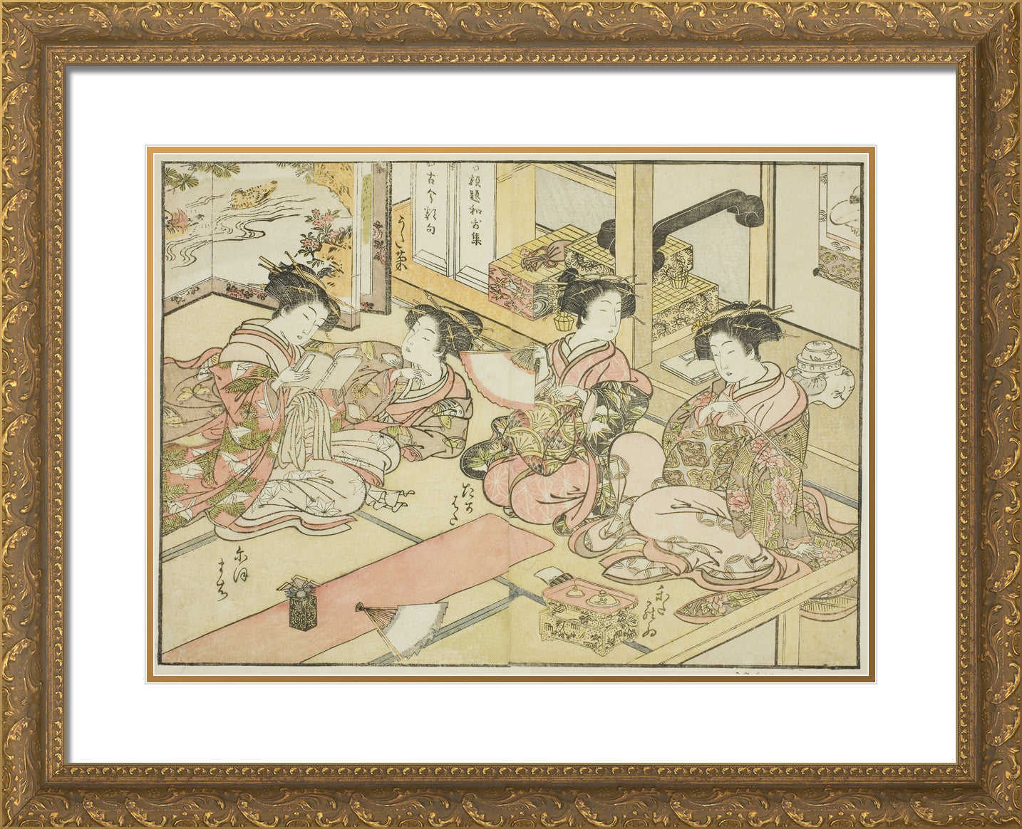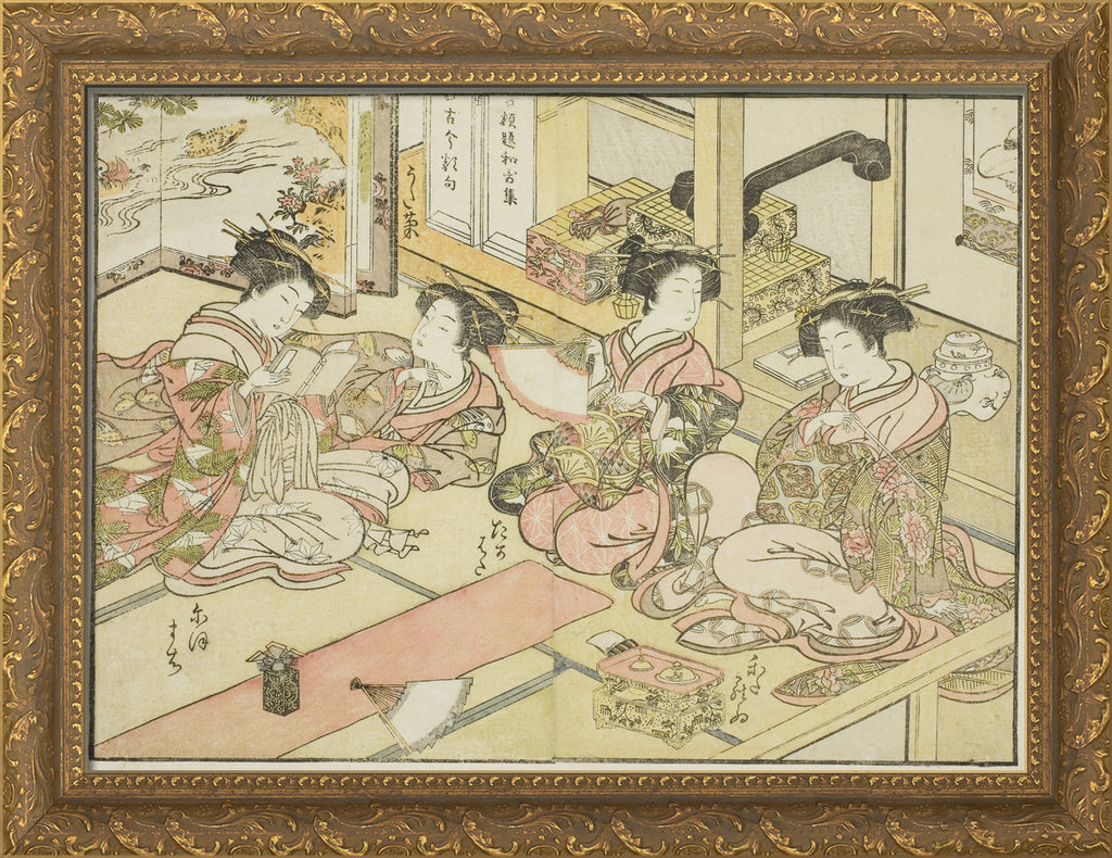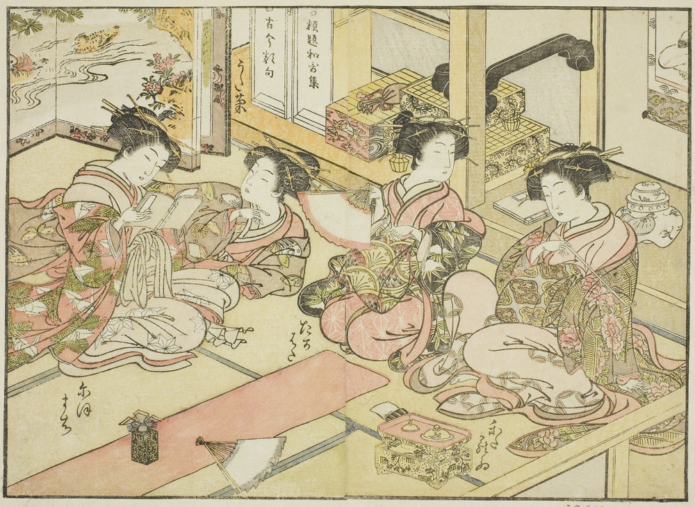 / Courtesans of the Ogiya, from the book "Mirror of Beautiful Women of the Pleasure Quarters (Seiro bijin awase sugata kagami)," vol. 1 by Katsukawa Shunsho