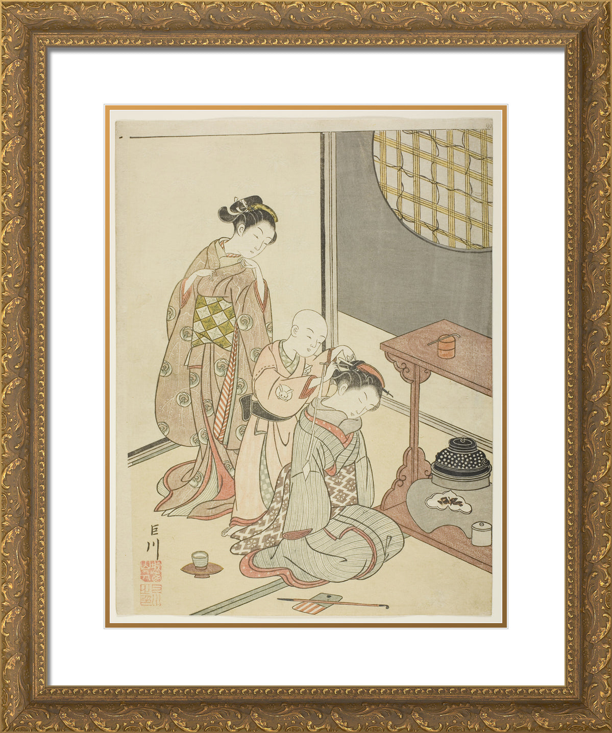 / Night Rain of the Tea Stand (Daisu no yau), from the series "Eight Views of the Parlor (Zashiki hakkei)" by Suzuki Harunobu