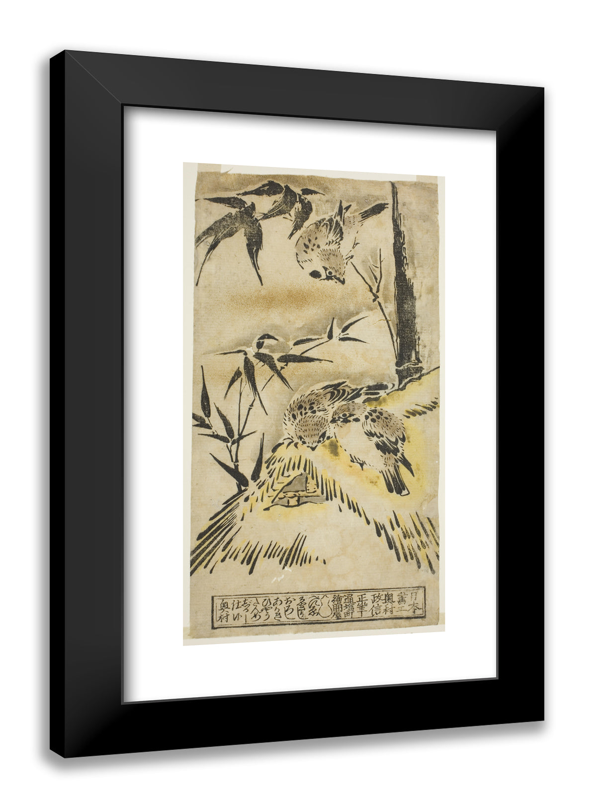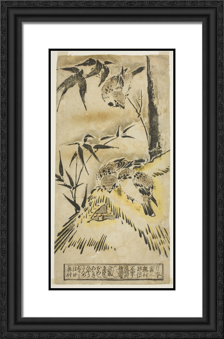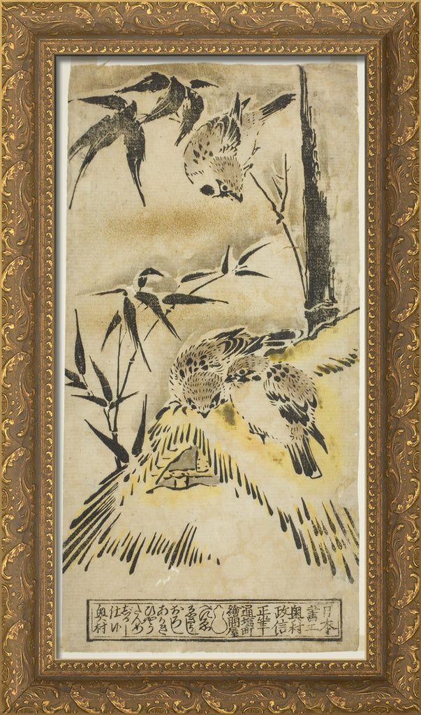 • Sparrows, Thatched Roof, and Bamboo by Okumura Masanobu