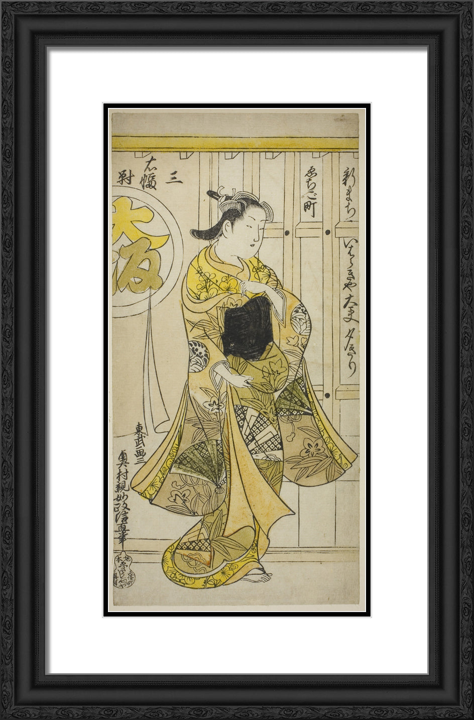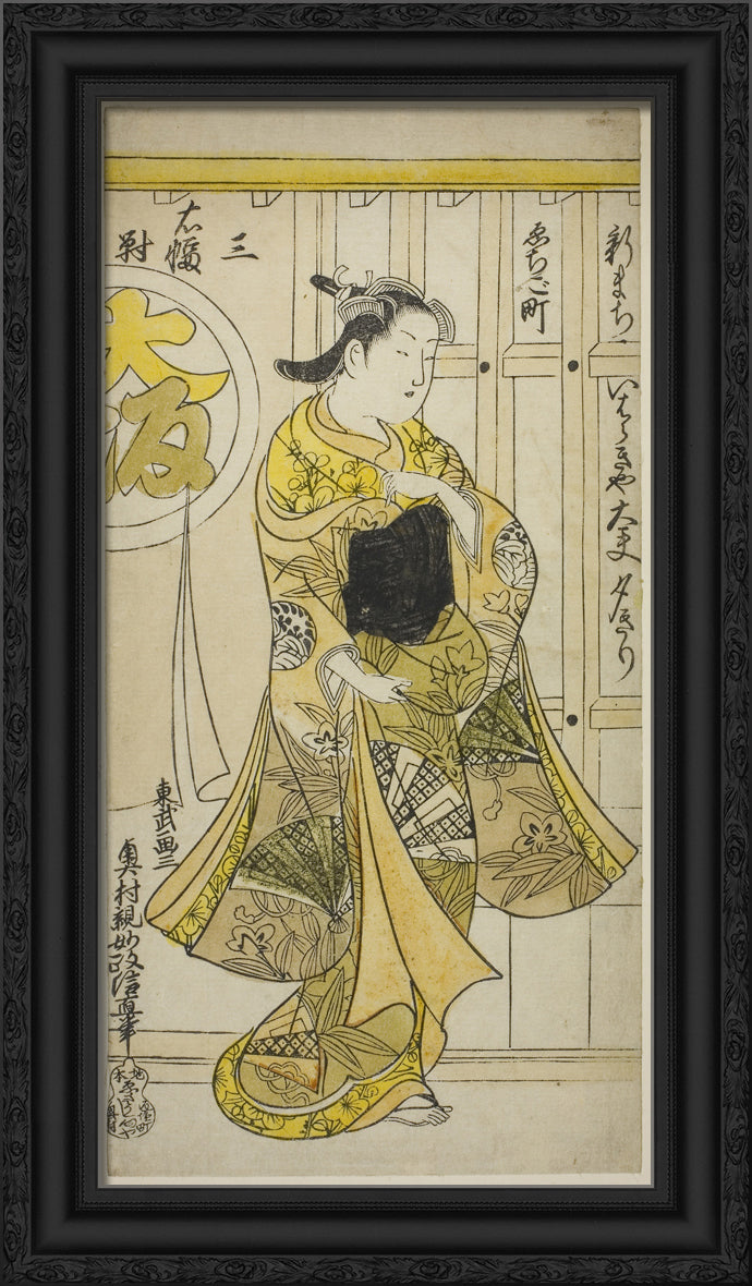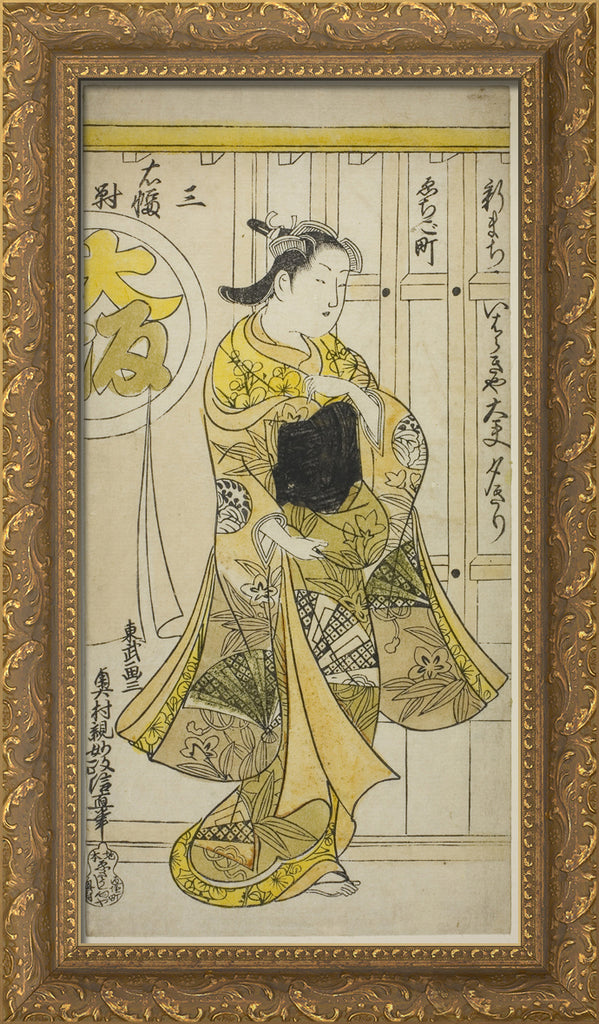 / The Courtesan Yugiri of Ibarakiya, Osaka, from a triptych of beauties of the three capitals by Okumura Masanobu