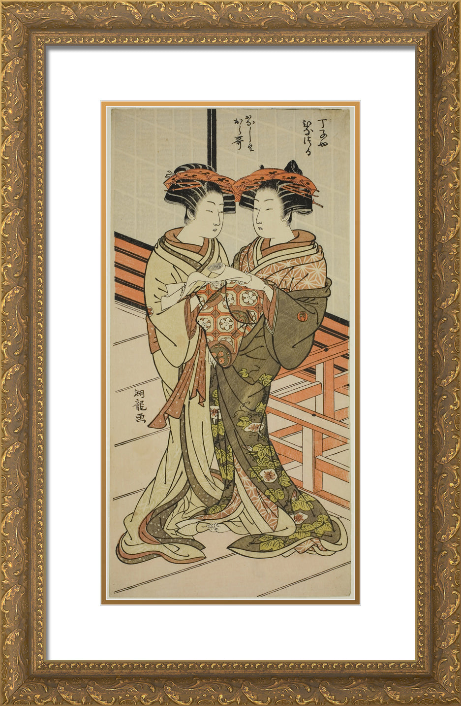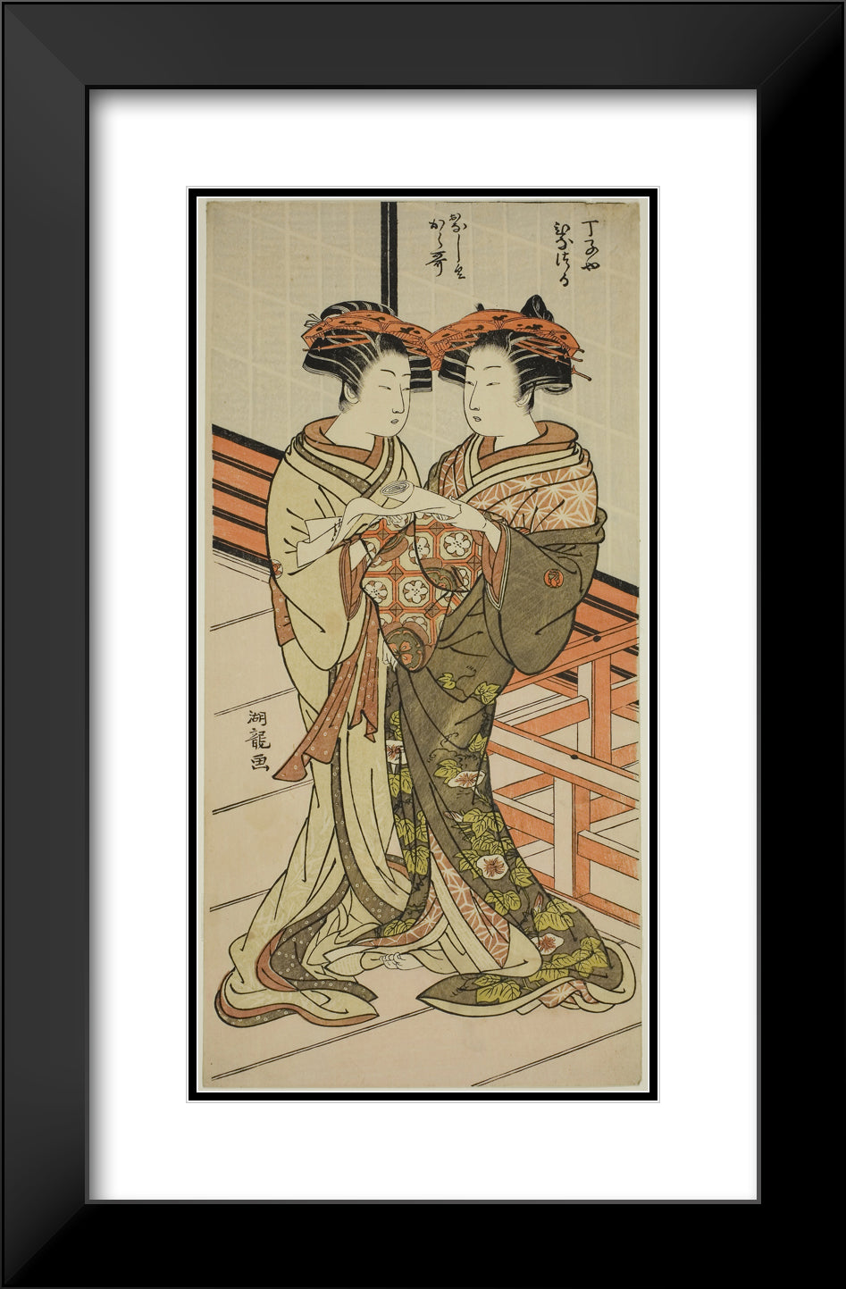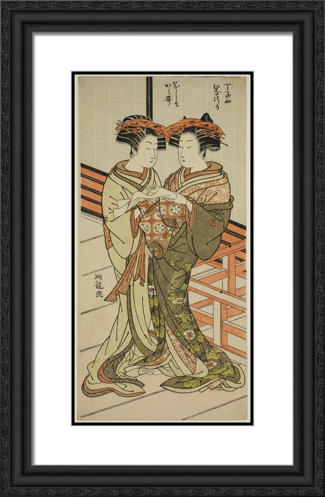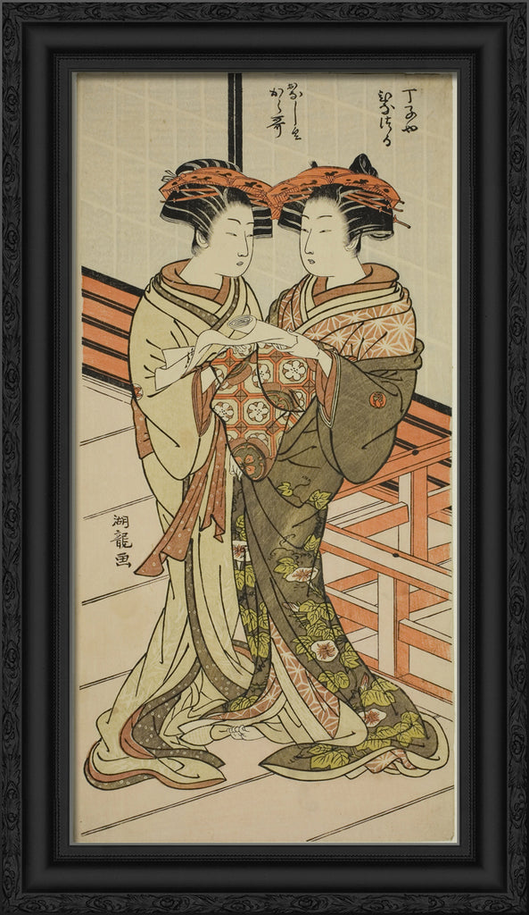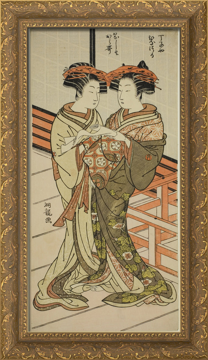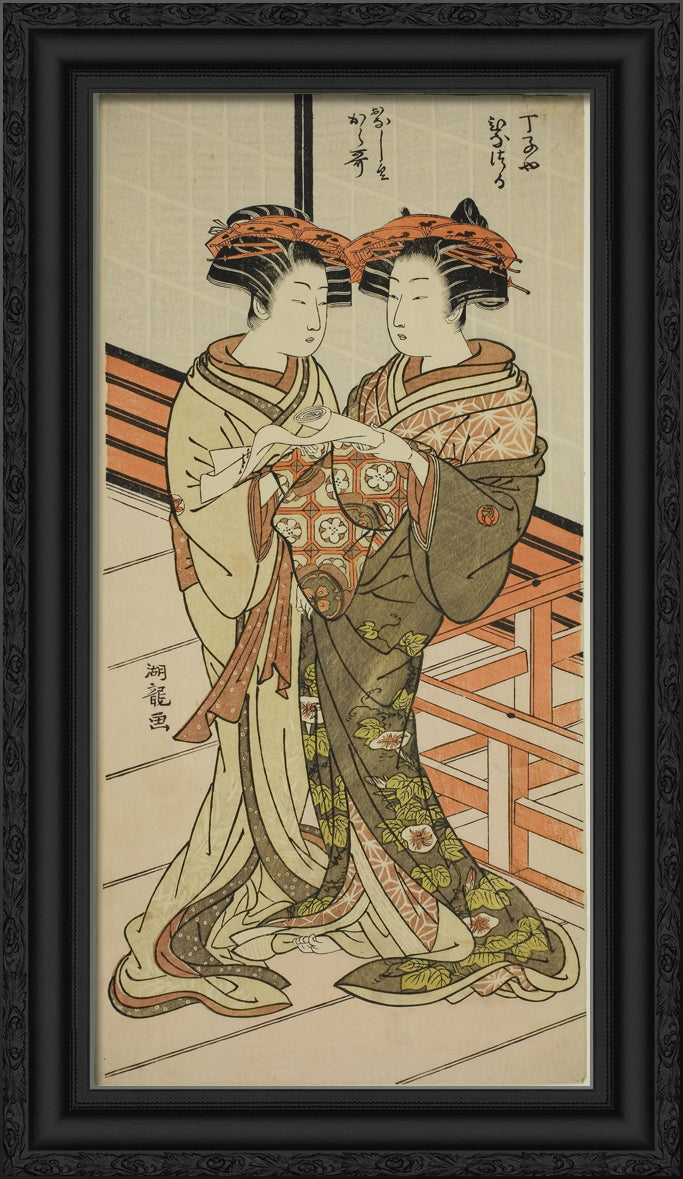 / The Courtesans Hinazuru and Karauta of the Chojiya Holding a Letter by Isoda Koryusai