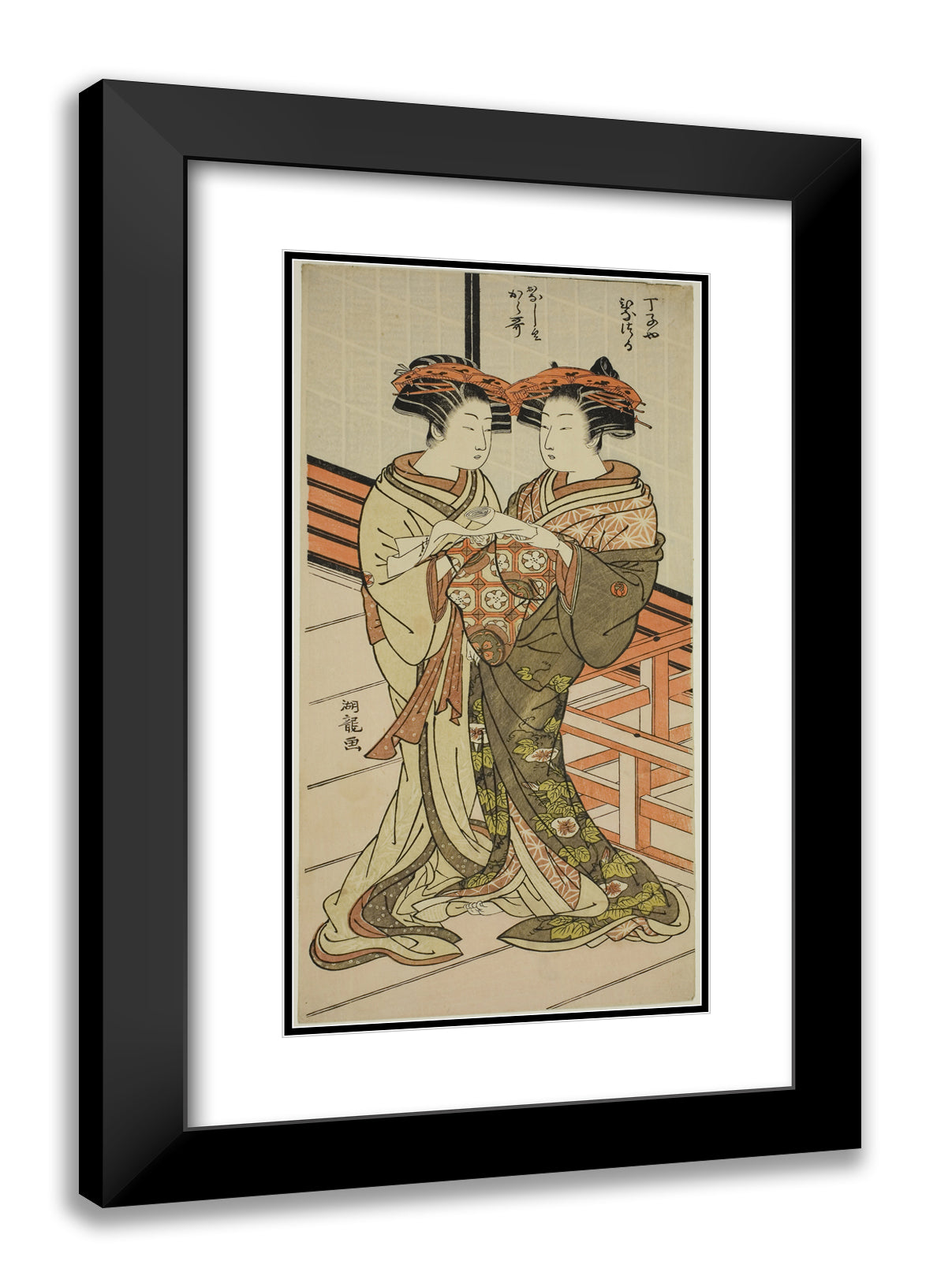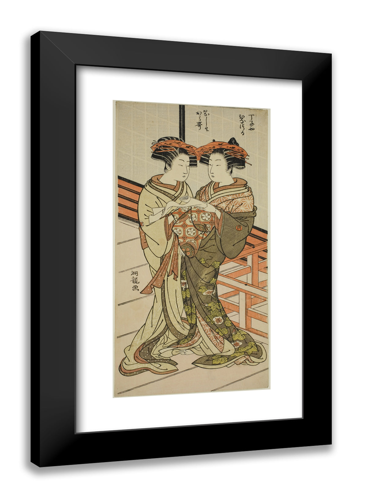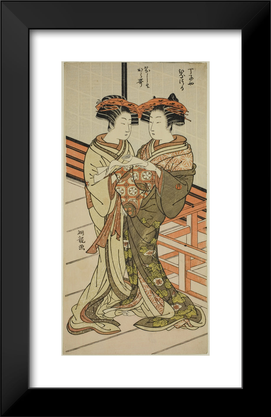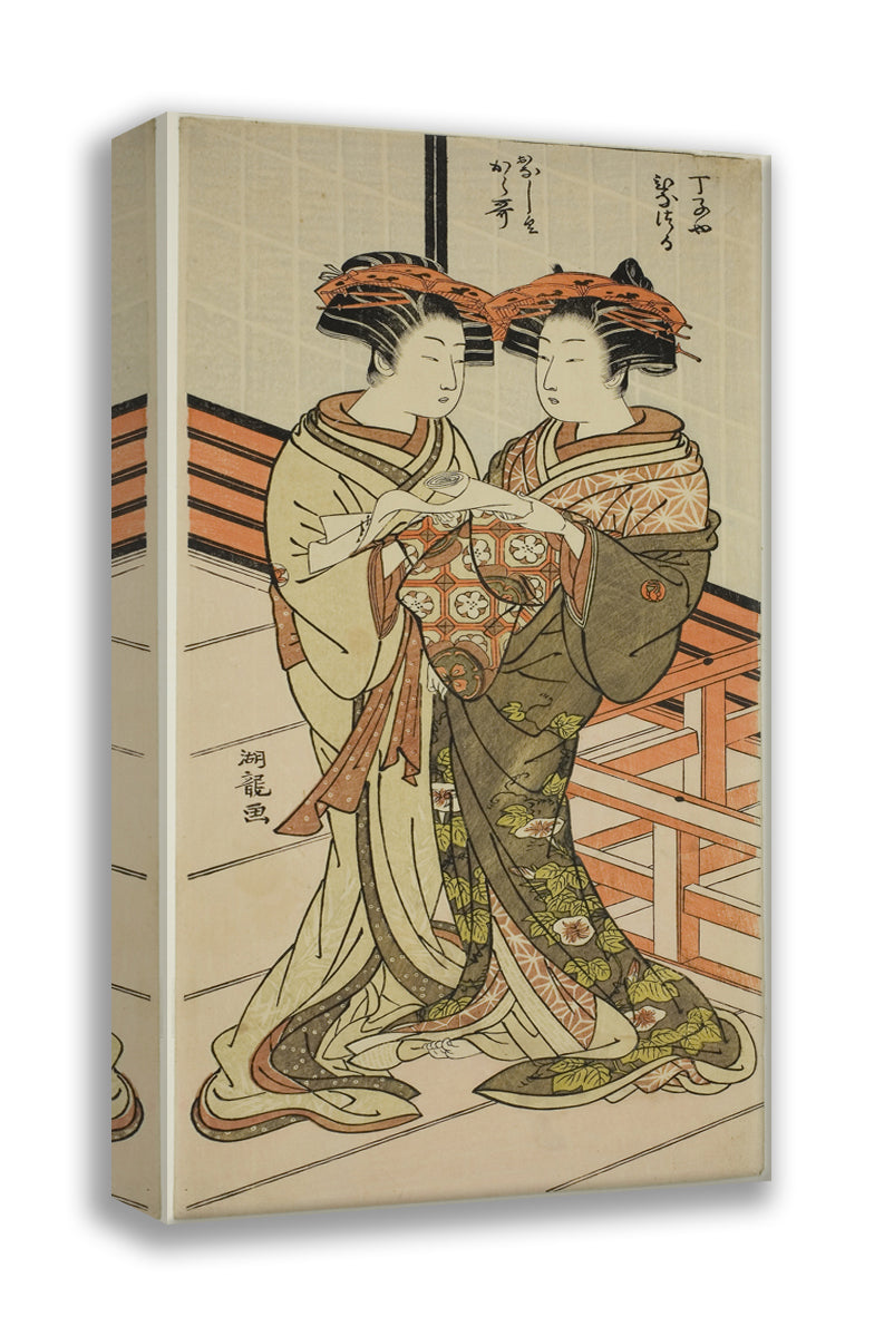 / The Courtesans Hinazuru and Karauta of the Chojiya Holding a Letter by Isoda Koryusai