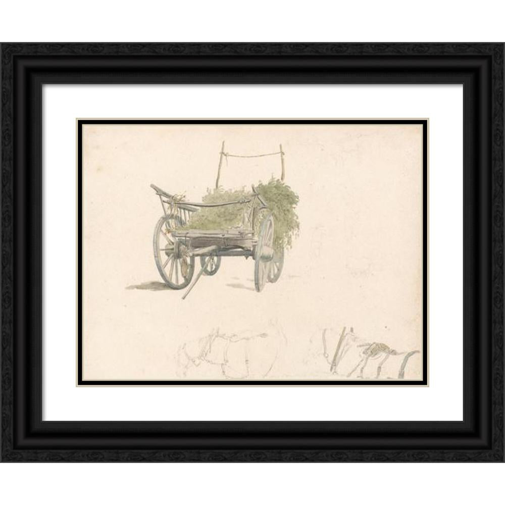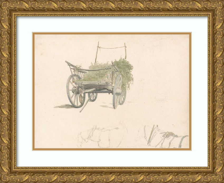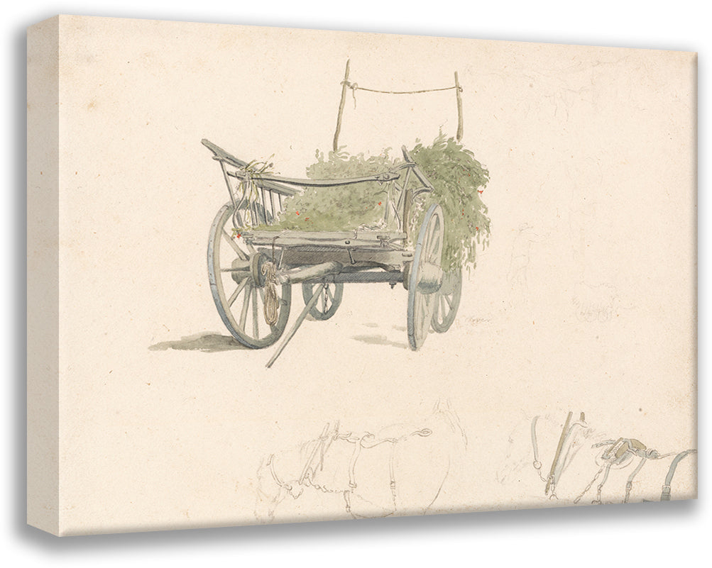 A Wagon with Hops and Two Sketches of Horses