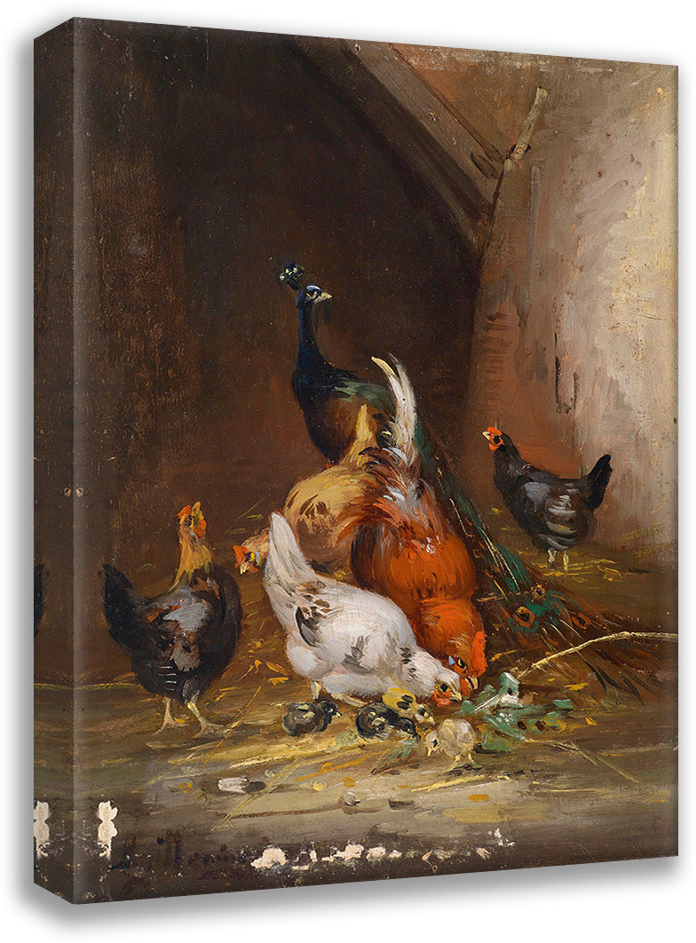 Chickens and a Peacock