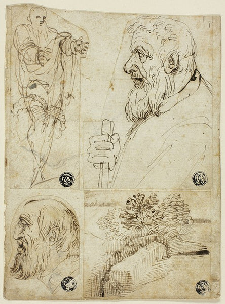 Agostino Carracci Four Sketches; Standing Male Figure; Profile Bust of Bearded Man; Profile Head of Bearded Man; Landscape from $9.99