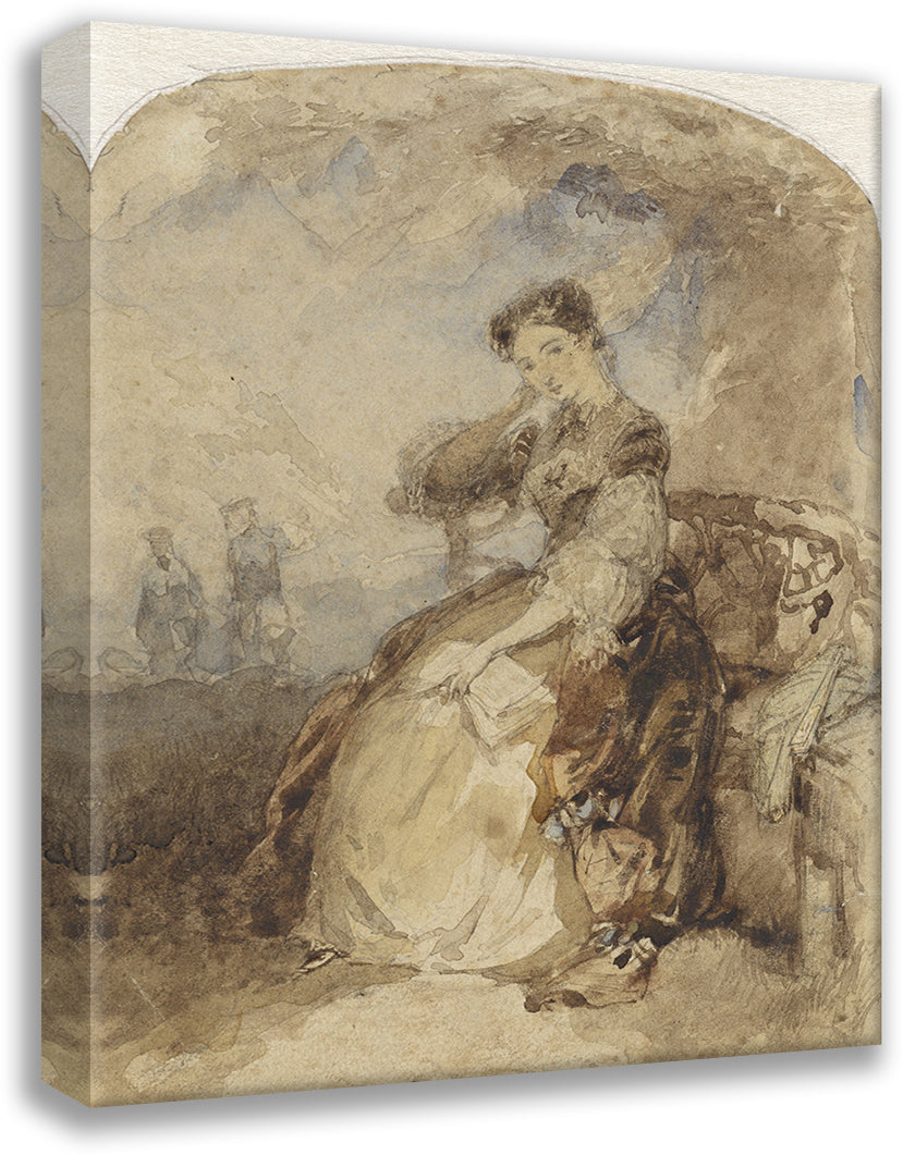 / Lady Sitting on a Bench Under a Tree, with a Book in Hand (1824 - 1894)
