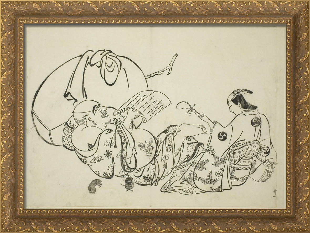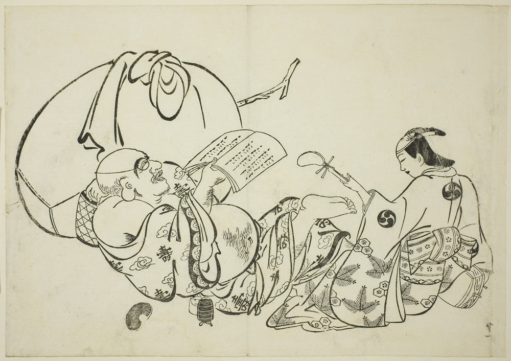 / Hotei Reading a Book, no. 11 from a series of 12 prints by Okumura Masanobu