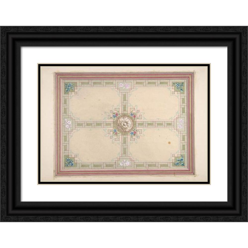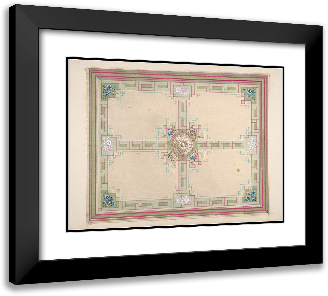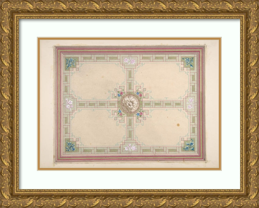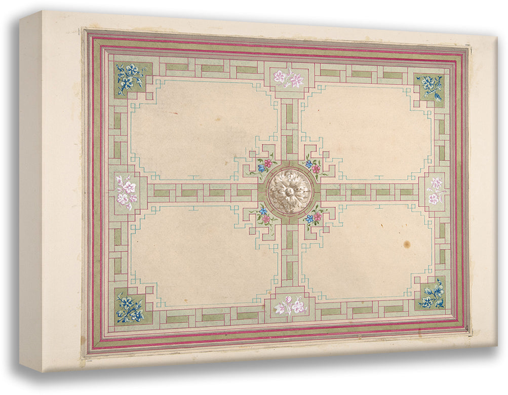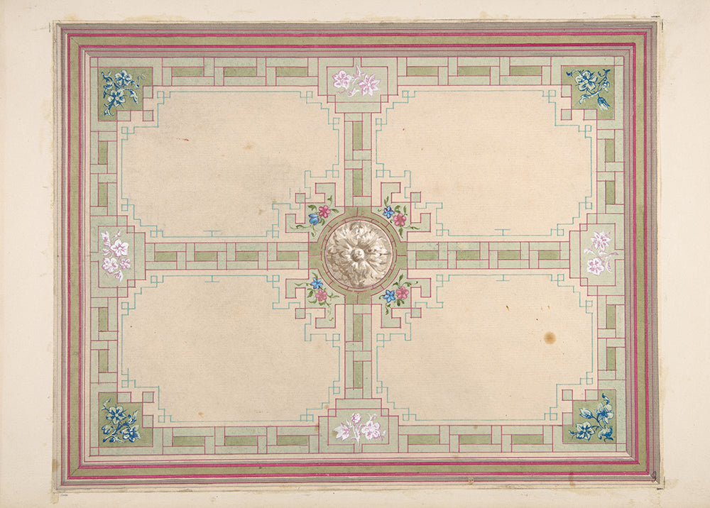 / Design for a Ceiling with Floral Accents and Greek Key Border (19th Century)