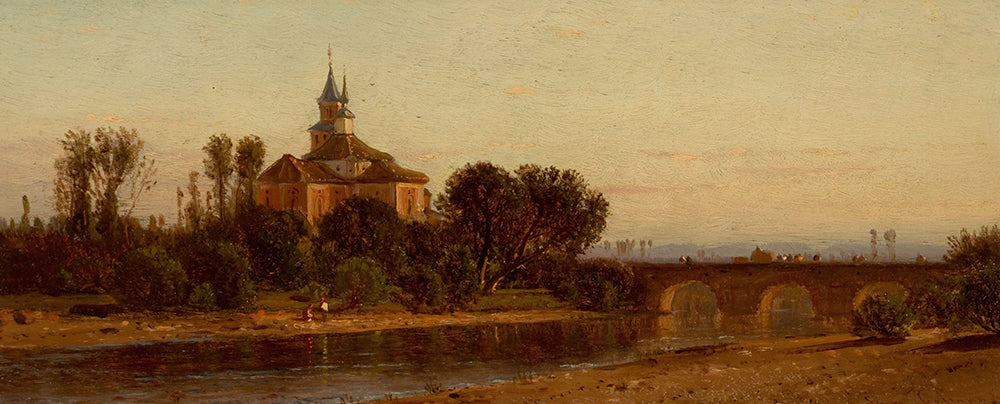 European River View with Bridge and Church