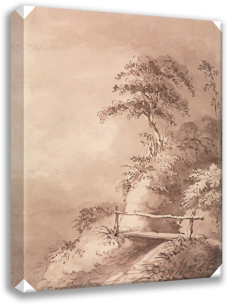 Footbridge Over Hilly Stream