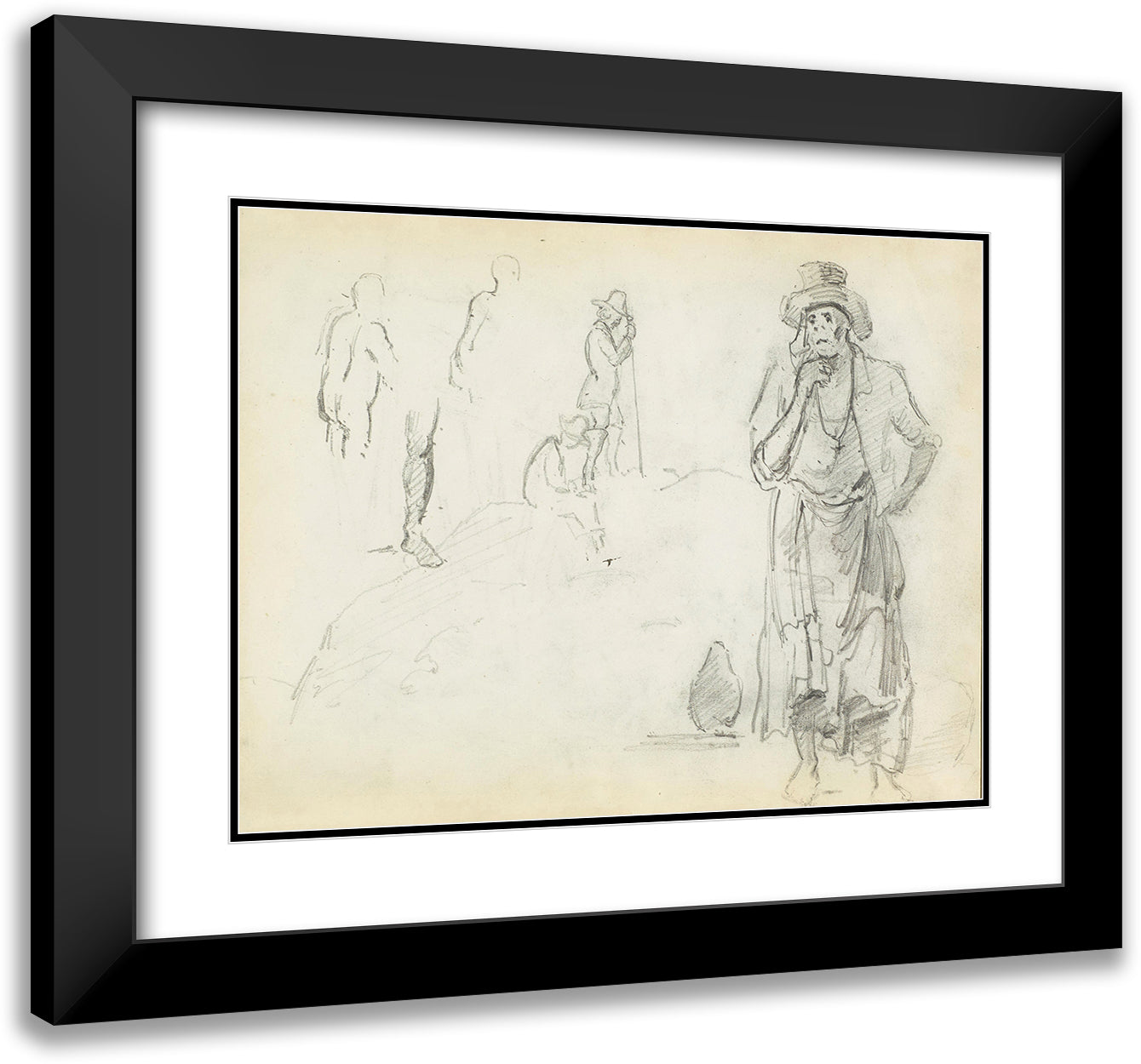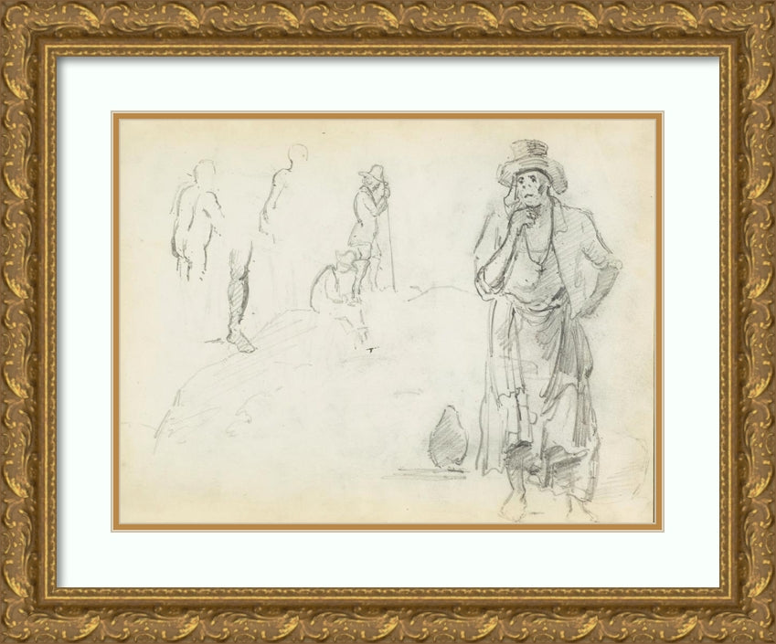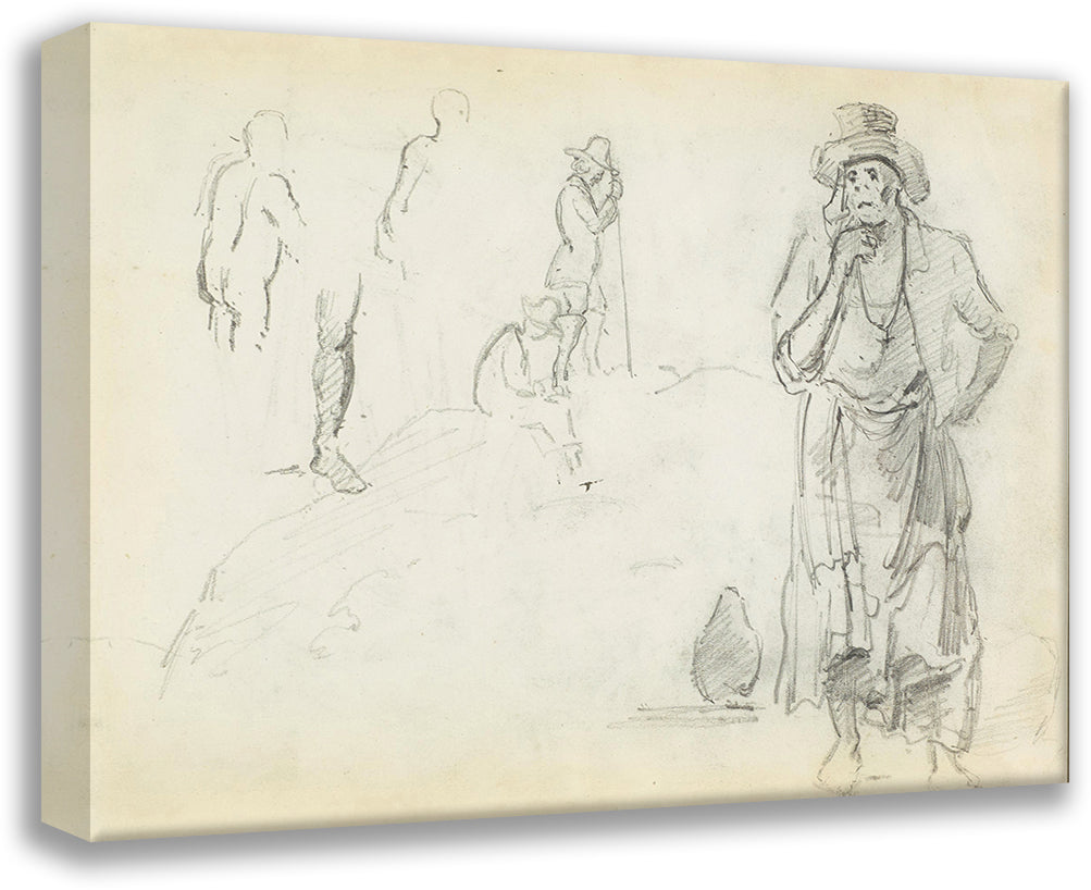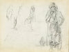 / Man with His Hand to His Chin, with Sketches of Men in Profile and a Leg (1854)