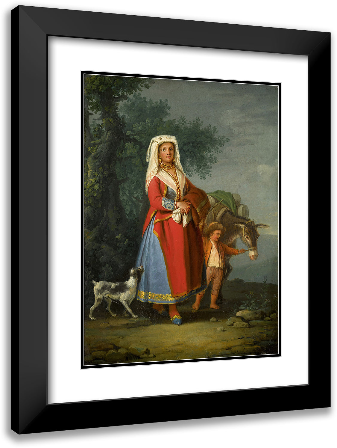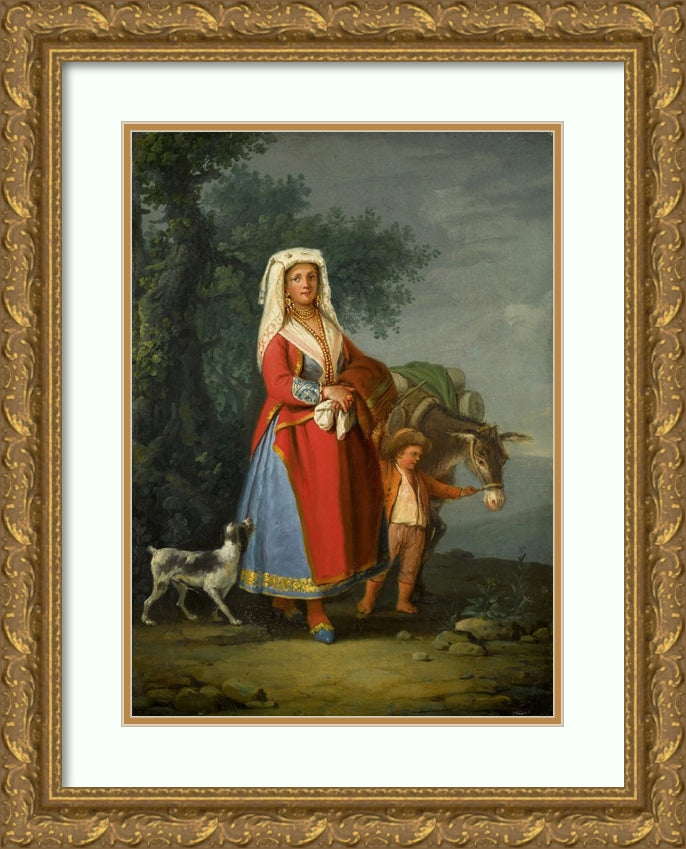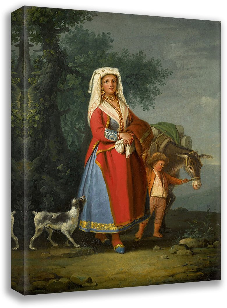/ A Young Girl in Traditional Neapolitan Dress in a Landscape, Together with a Young Boy and a Donkey