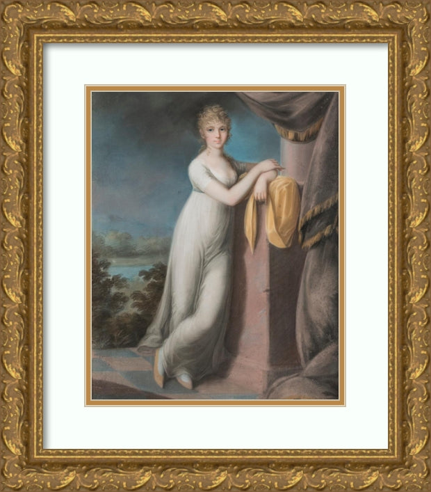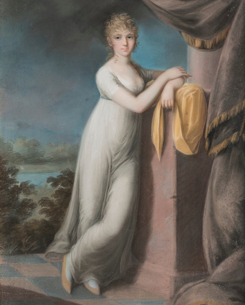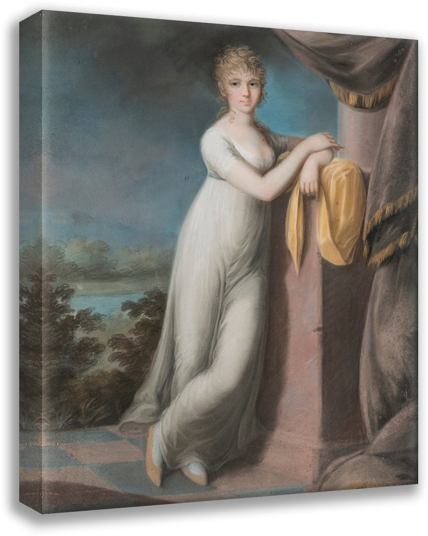 / Portrait of a Young Lady Leaning Against a Pedestal, a Landscape Beyond