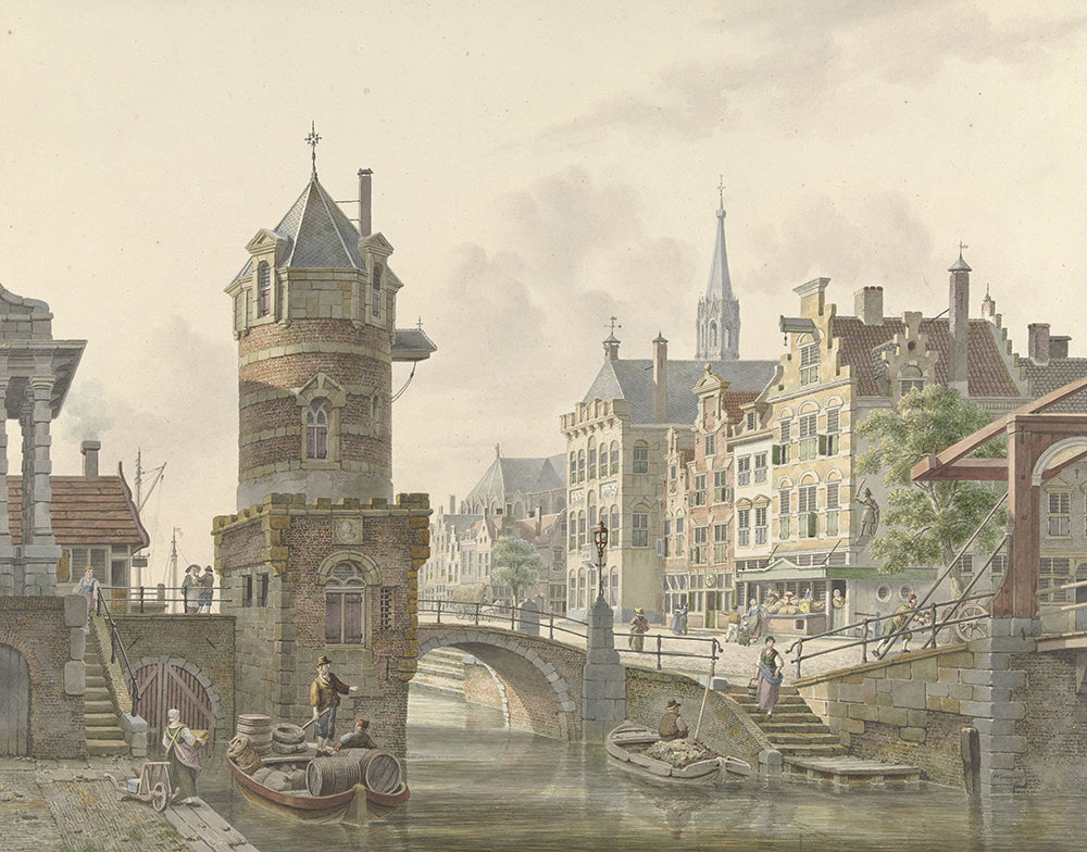 Gracht in a City with a Turret Near a Stone Bridge (1788 - 1846)