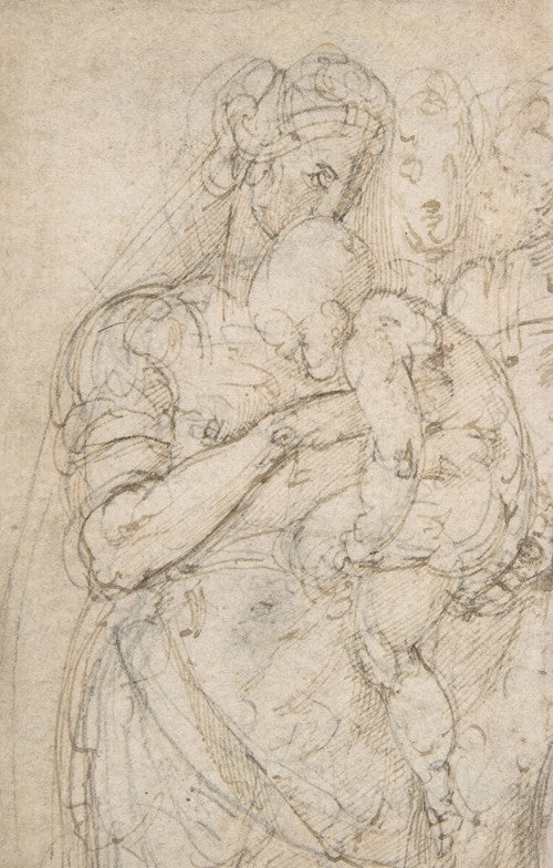 Standing Virgin with Child, Two Heads at Upper Right (1530)