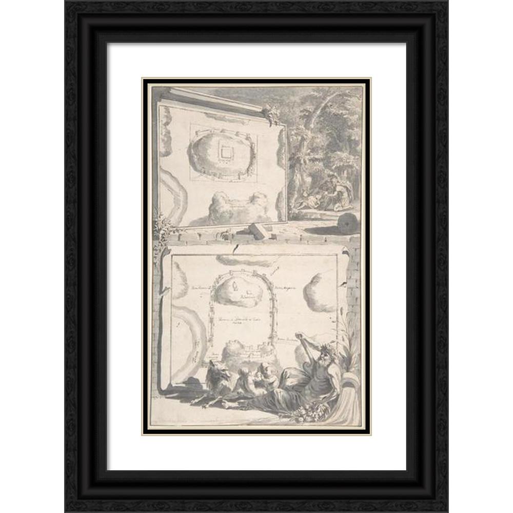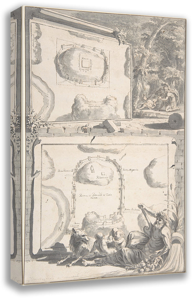 / Two Maps of Ancient Rome with a River God and Romulus and Remus (Before 1704)