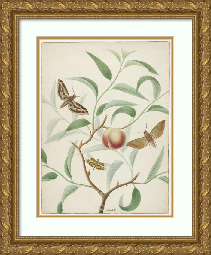 Peach on a Branch with Two Exotic Butterflies and a Dragonfly (1774)