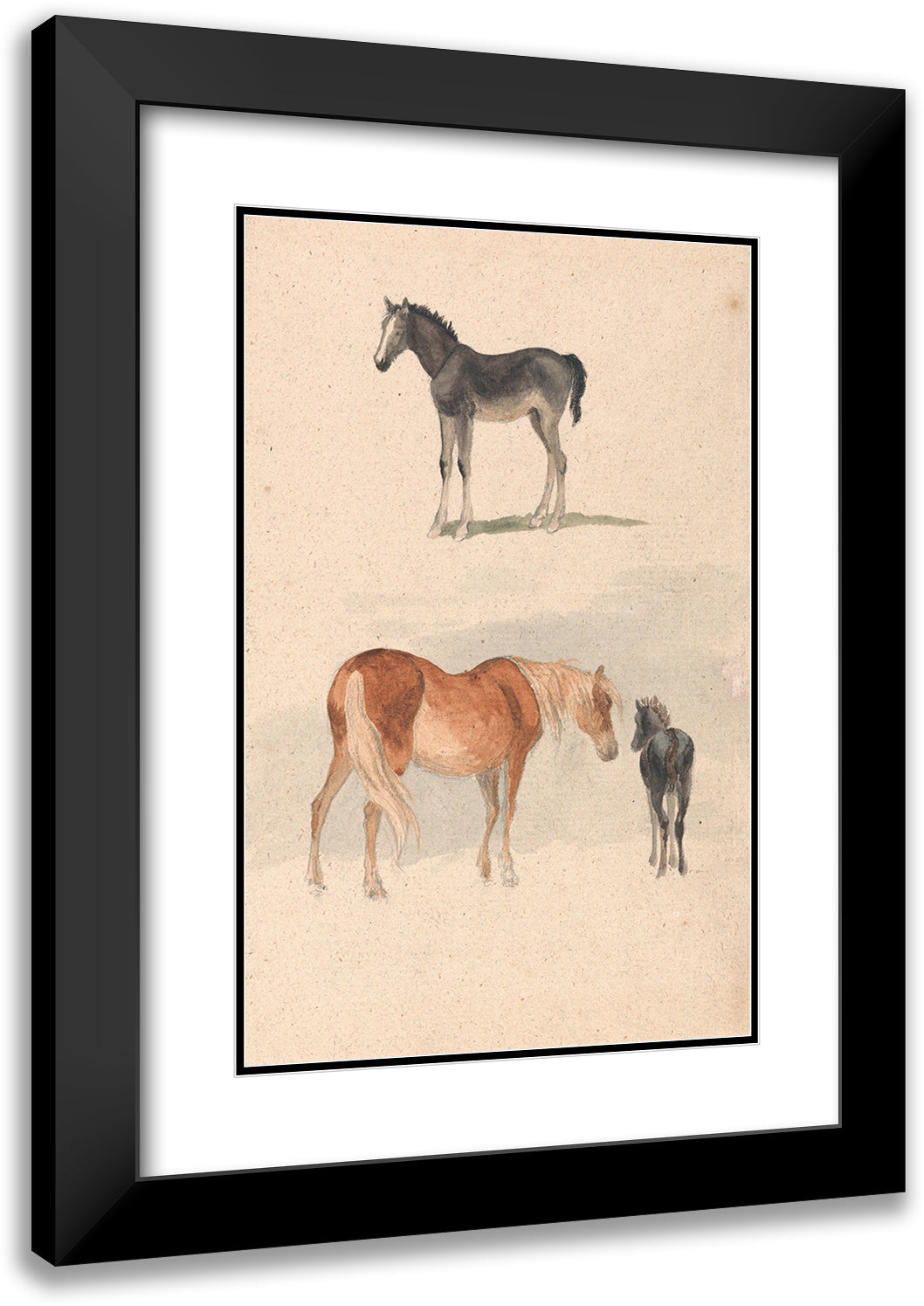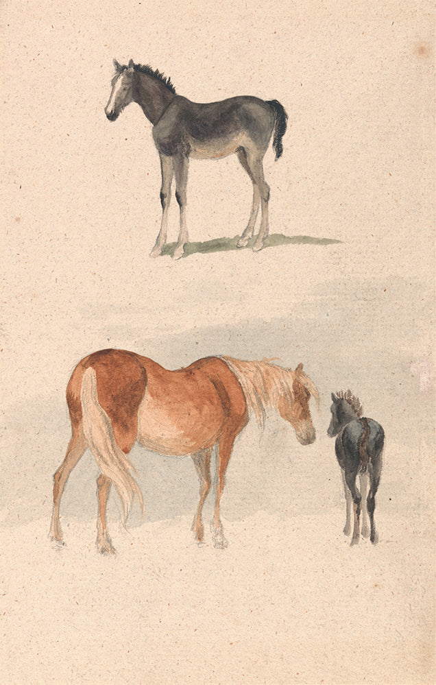 Two Studies; a Foal, and a Mare and Foal