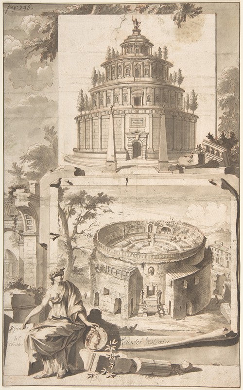 / A Reconstruction of the Mausoleum of Augustus (Above) and a View of the Ruins (Below) (Before 1704)