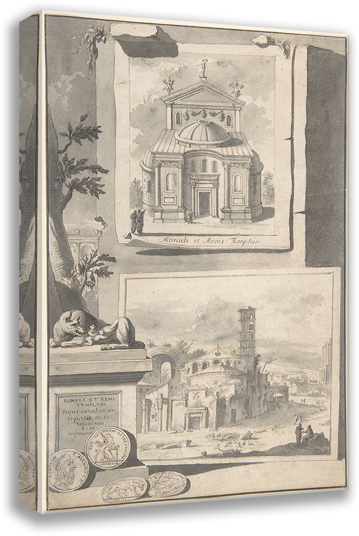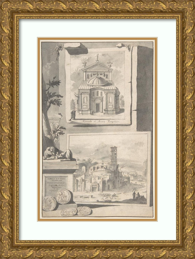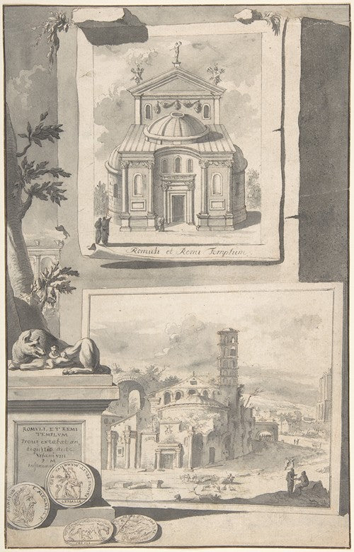 / A Reconstruction of the Temple of Romulus and Remus (Above) and a View of the Ruins (Below) (Before 1704)