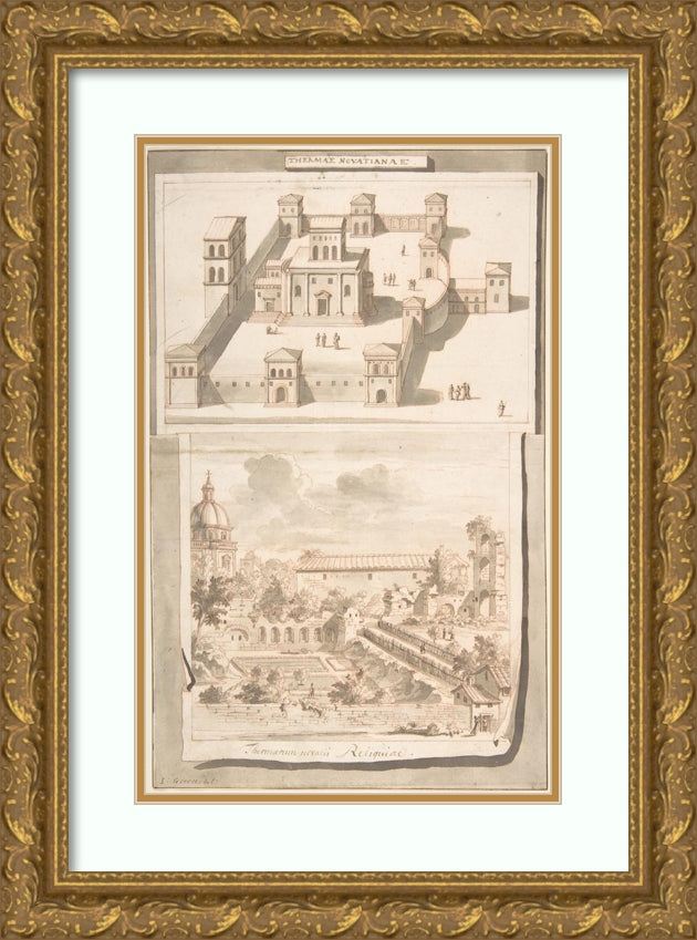 / A Reconstruction of the Thermae of Novitian (Above) and a View of the Ruins (Below) (Before 1704)