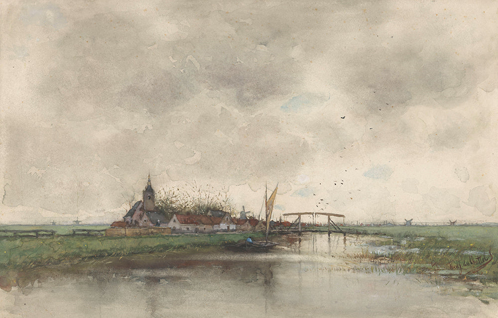 River Landscape with a View of a Village (1866 - 1917)