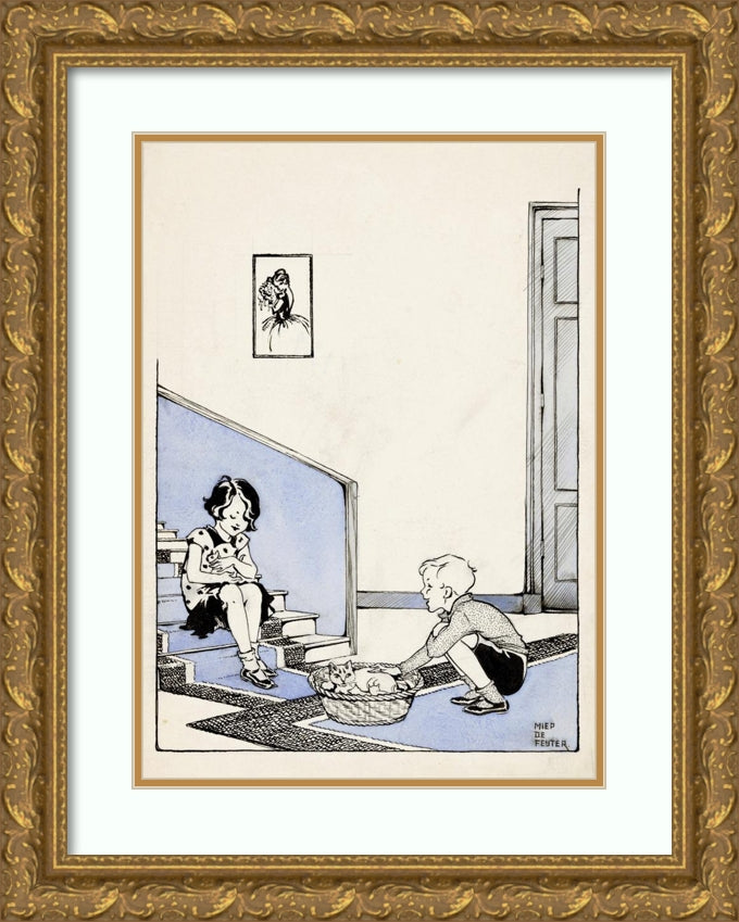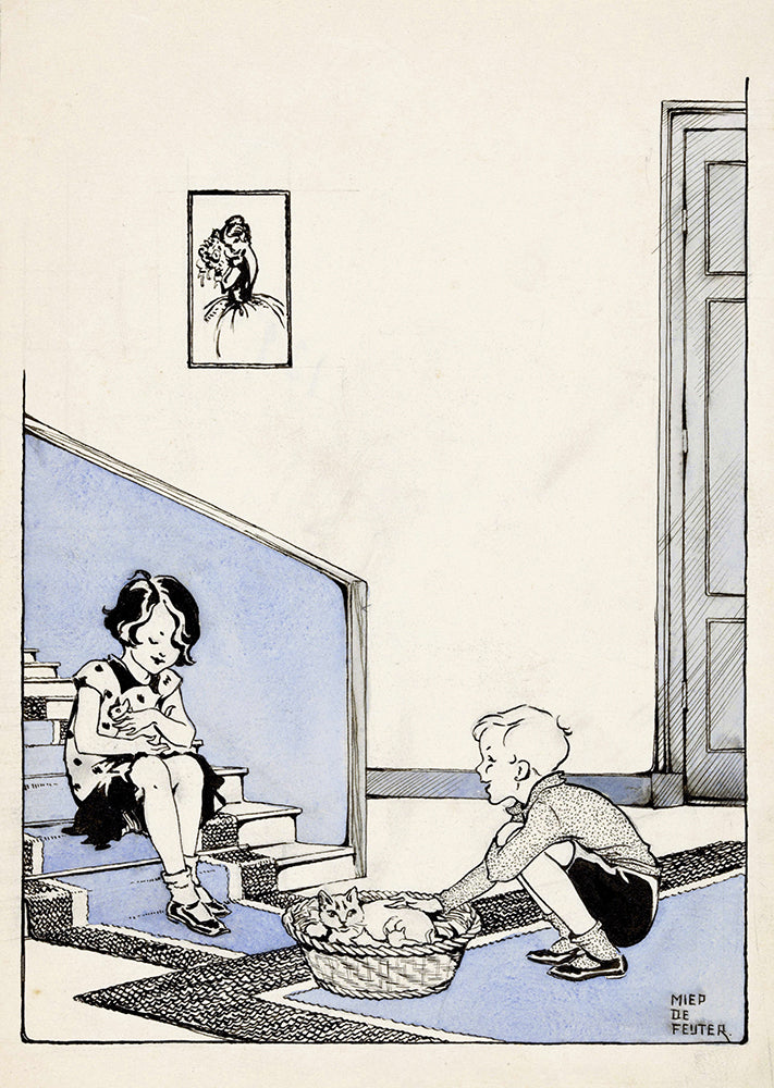 Two Children at a Nest with Kittens (1928)