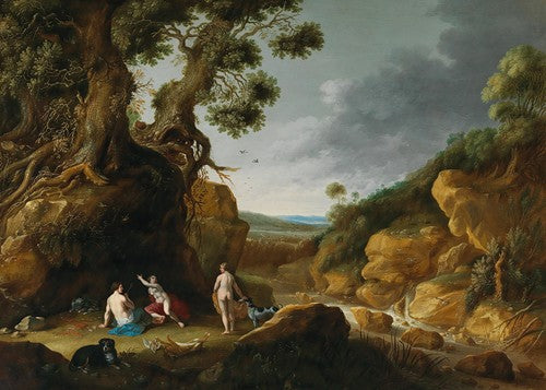 Gillis Claesz. de Hondecoeter Diana and Her Nymphs in a Rocky Wooded River Landscape (1637) from $9.99