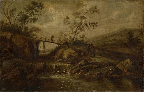 Esaias van de Velde A Landscape with Travellers Crossing a Bridge Before a Small Dwelling, Horsemen in the Foreground from $9.99