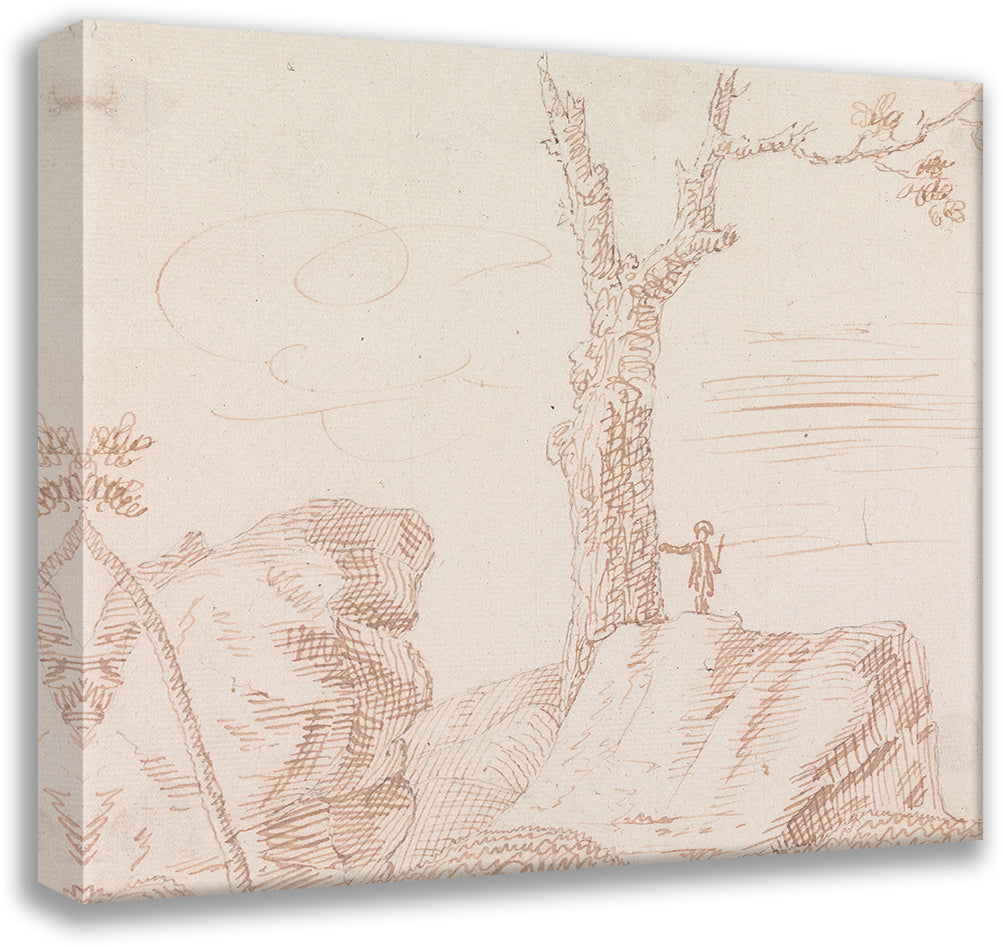 Landscape with Figure, Standing on Large Rock