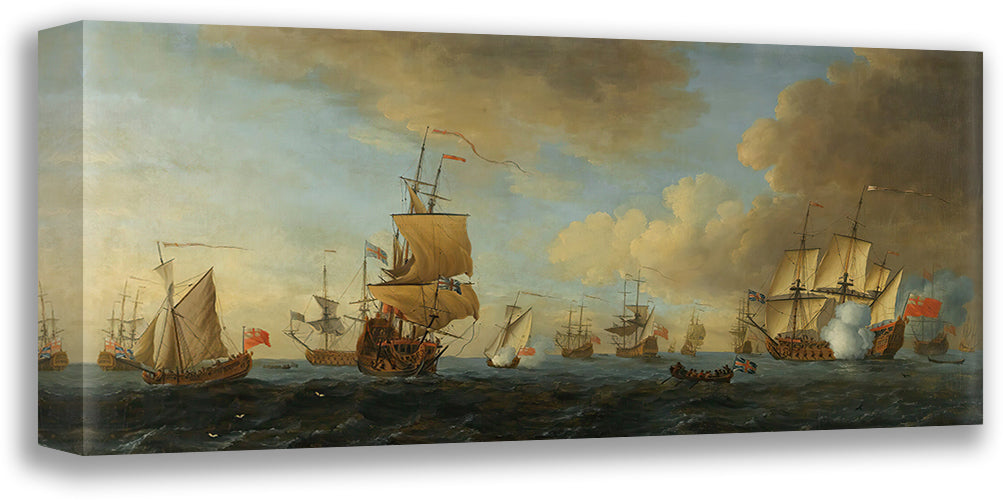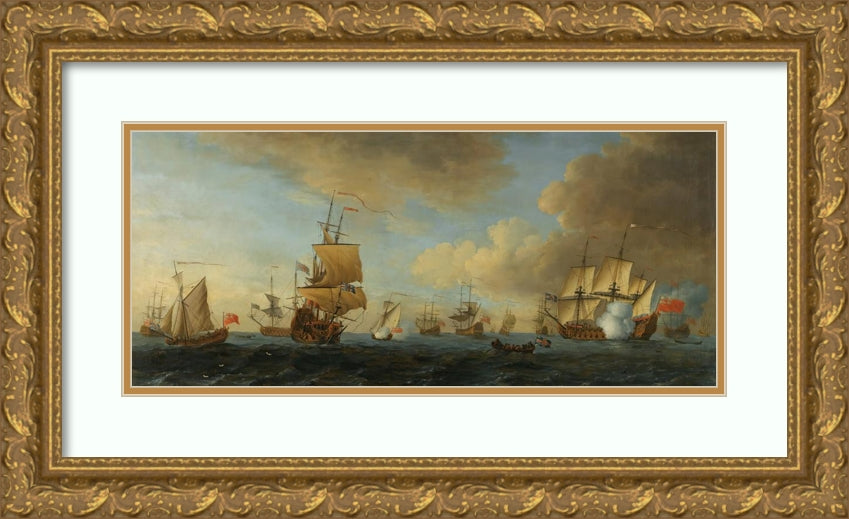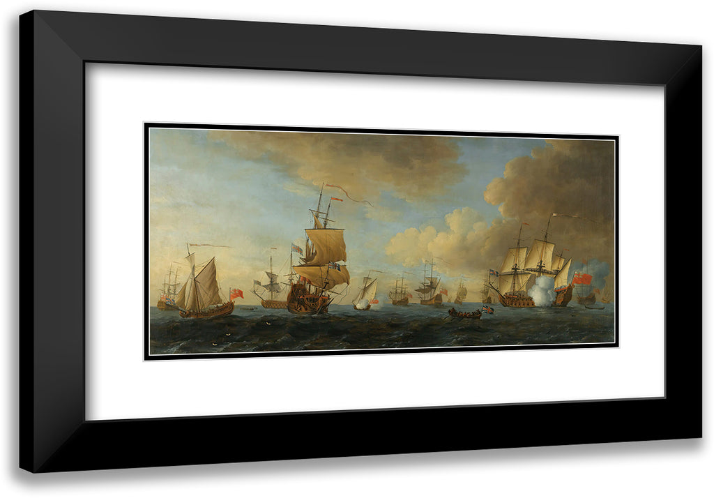 / An English Frigate Under Sail Firing a Gun, with Shipping at Anchor and Under Sail