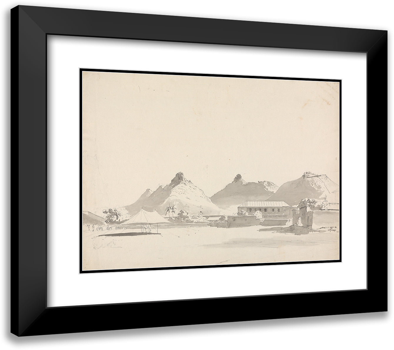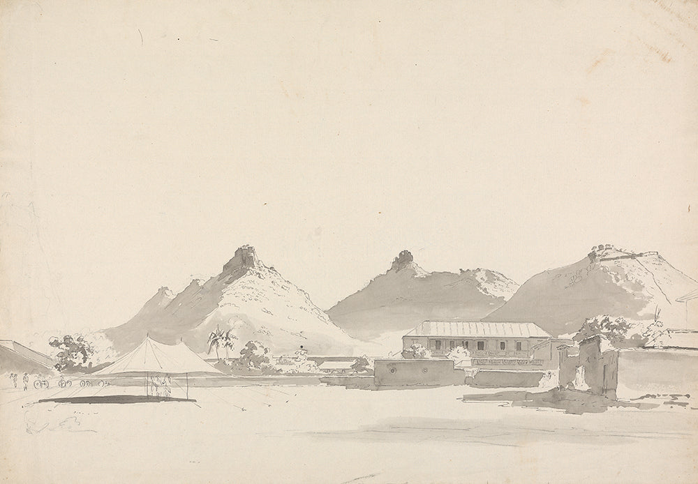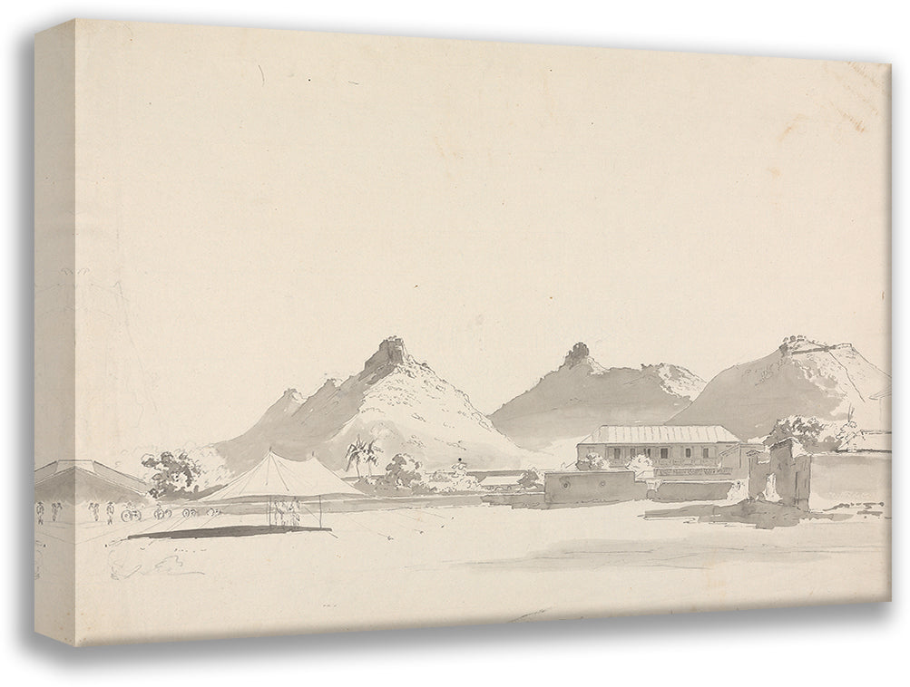 Military Encampment with Forts on Hills Behind