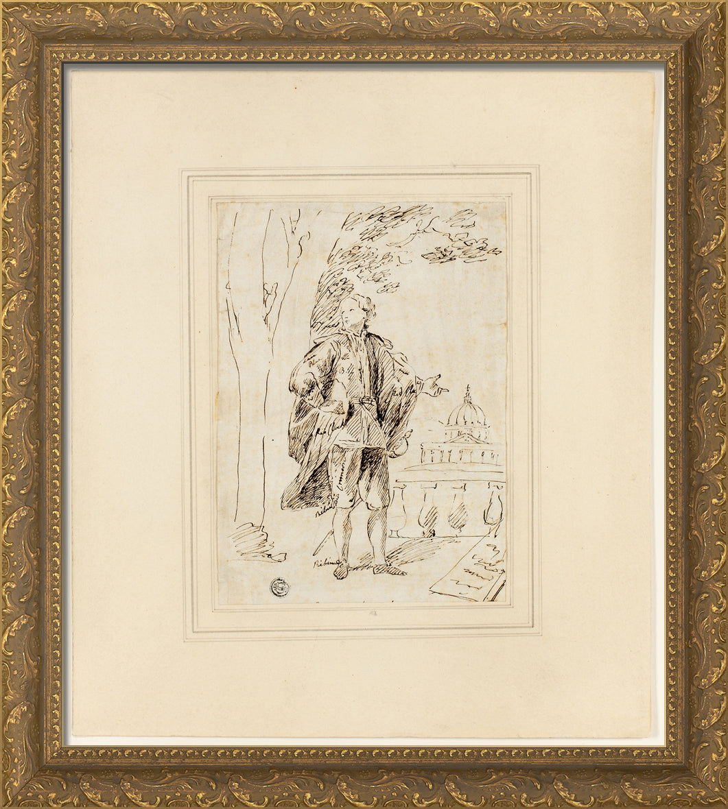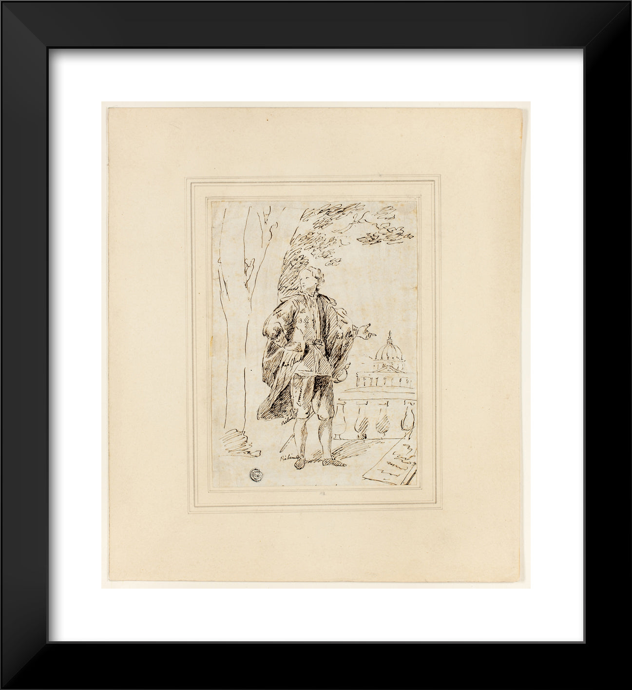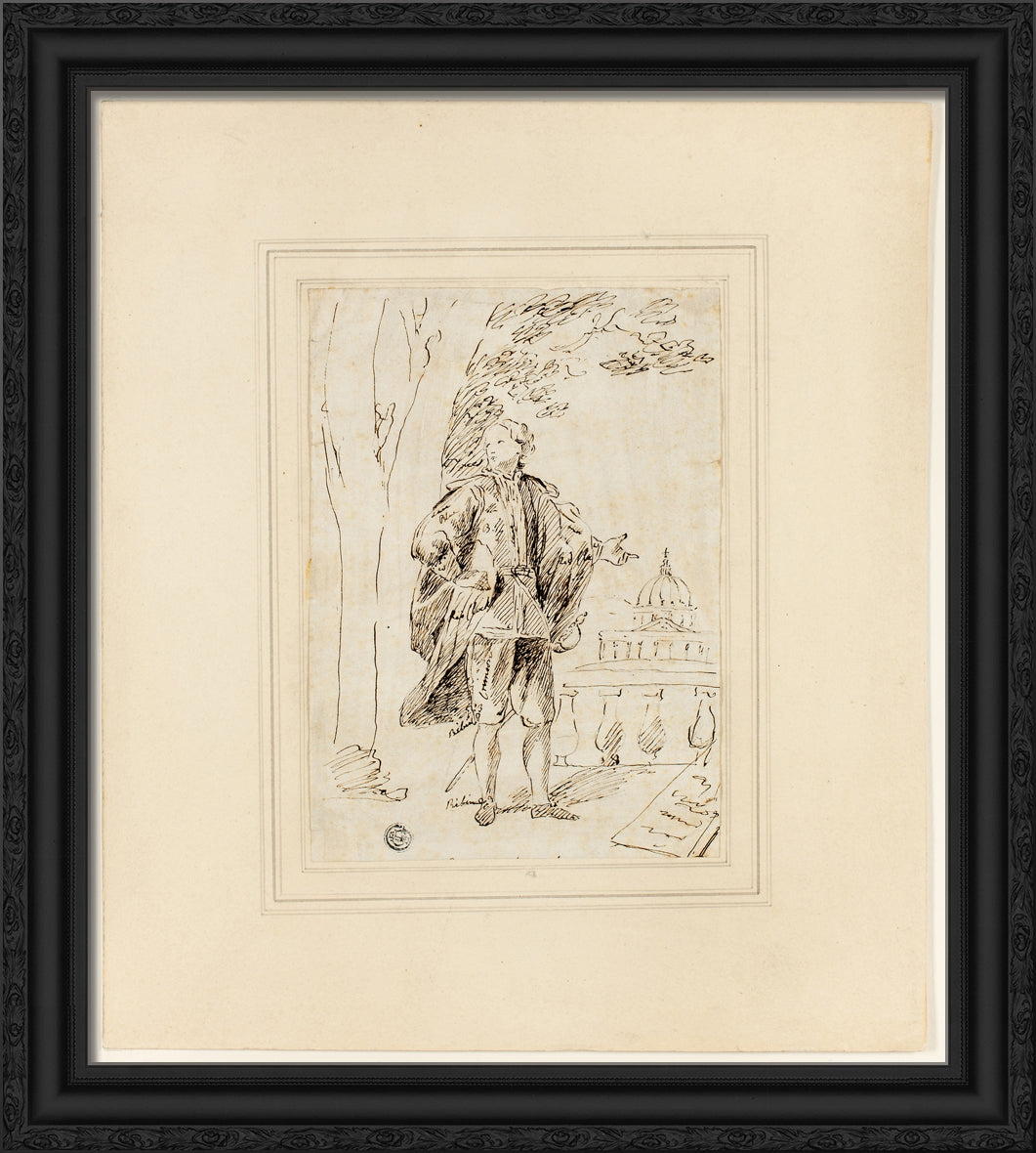 / Full Length Portrait of a Man Standing near Balustrade by John Vanderbank