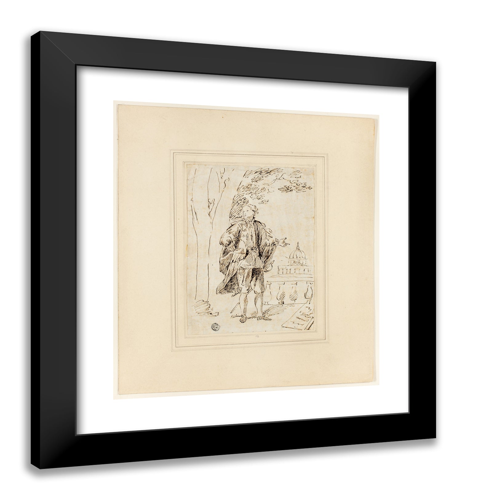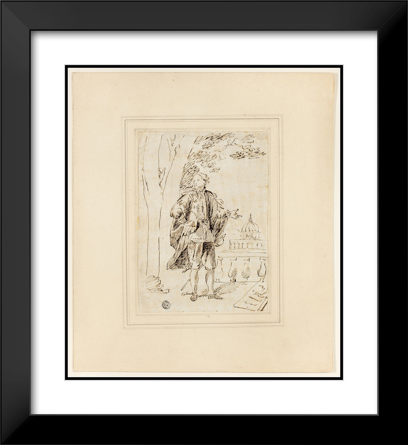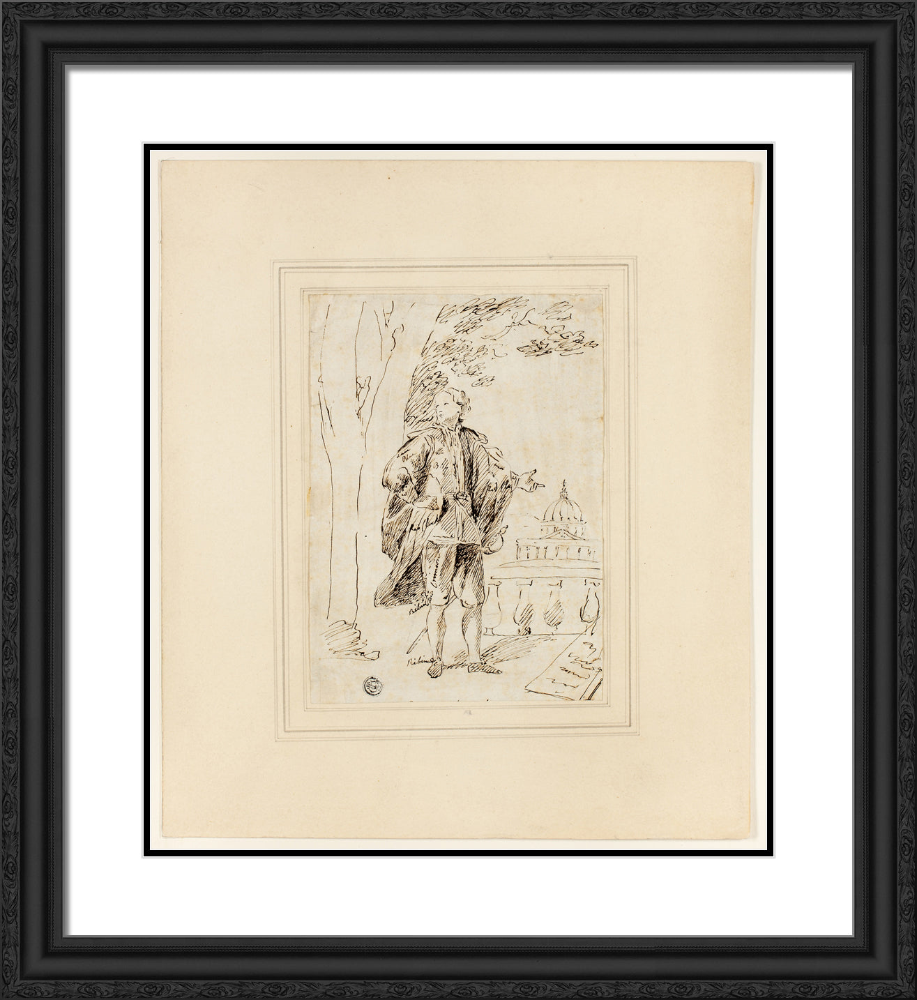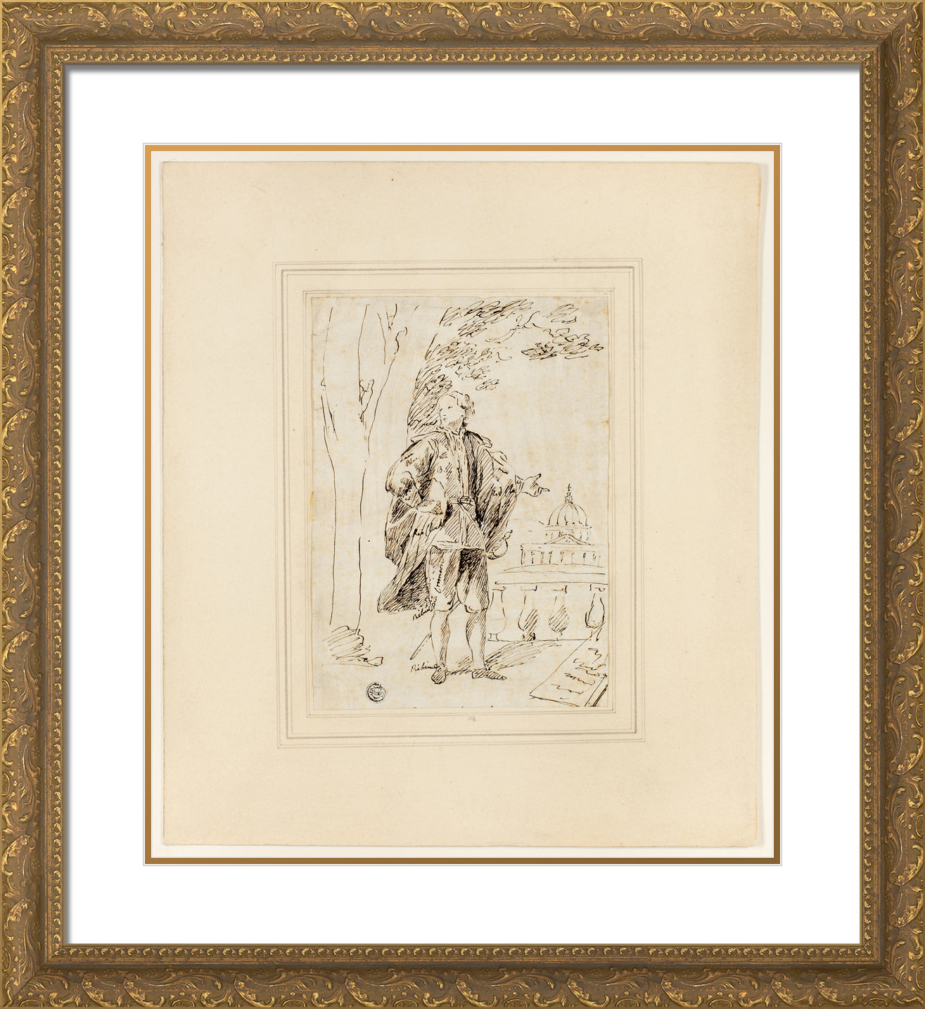 / Full Length Portrait of a Man Standing near Balustrade by John Vanderbank