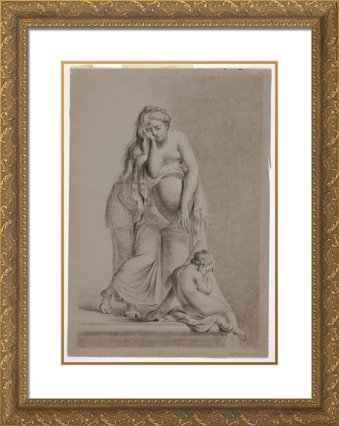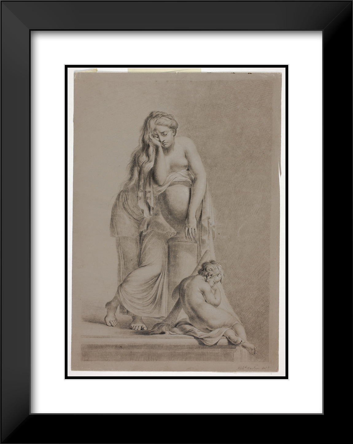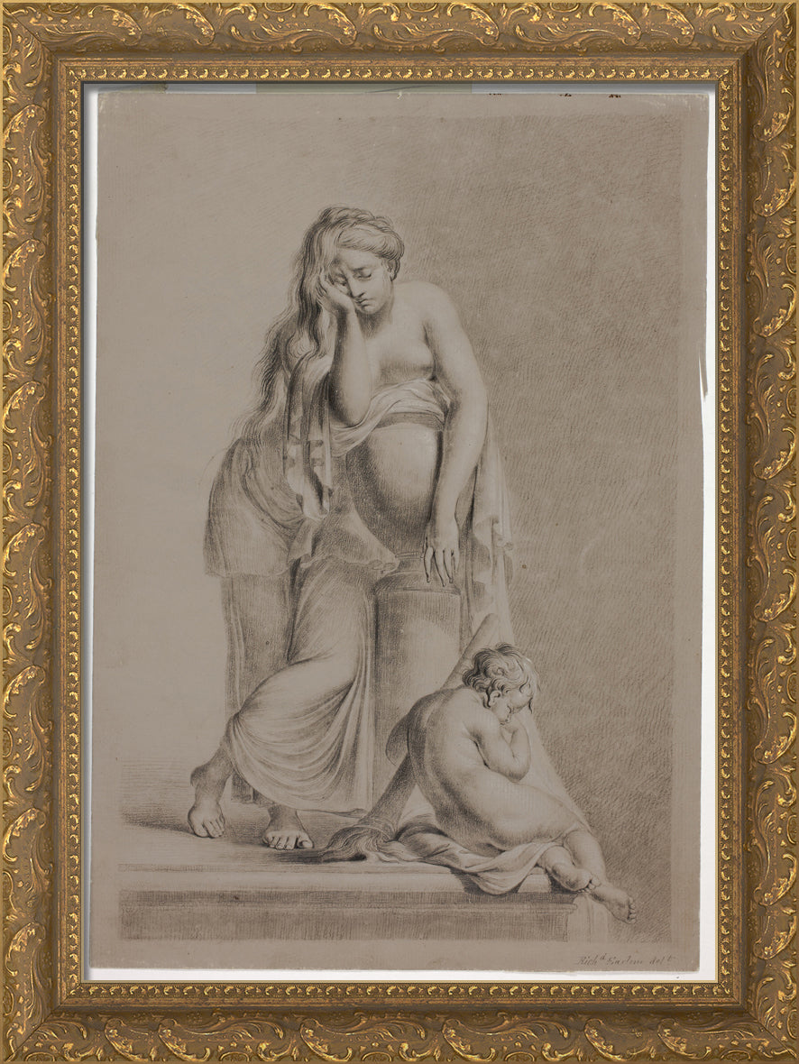 • Weeping Allegorical Female Figure with Putto by Richard Earlom