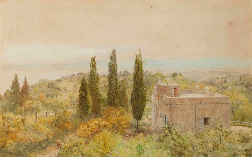 George Howland Beaumont Two Figures by the Side of a Pond and a Church in a Hilly Landscape from $9.99