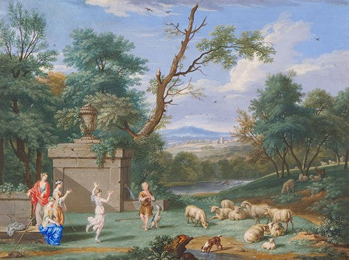 William Hodges A River Landscape with Monks Conversing by a Pair of Megaliths, with Ruins Beyond from $9.99