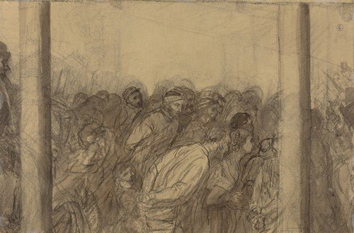 Crowd of People Seen Between Two Columns (Verso)