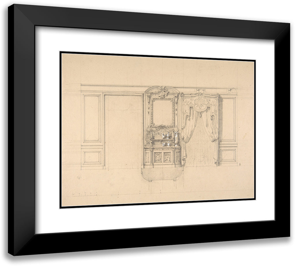 / Elevation of a Dining Room with a Carved Buffet and Window Draperies (19th Century)
