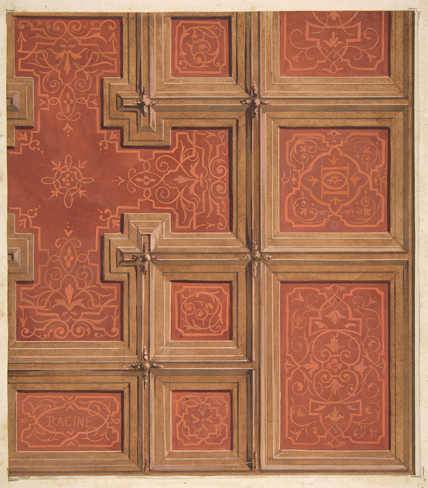 / Design for the Decoration of a Coffered Ceiling Ornamented with the Name ‘Racine’ and Entwined Letters; Dd (19th Century)