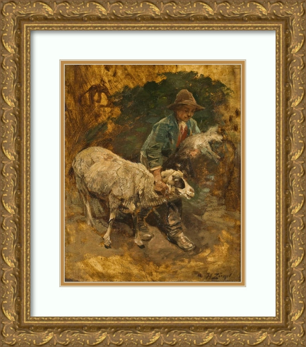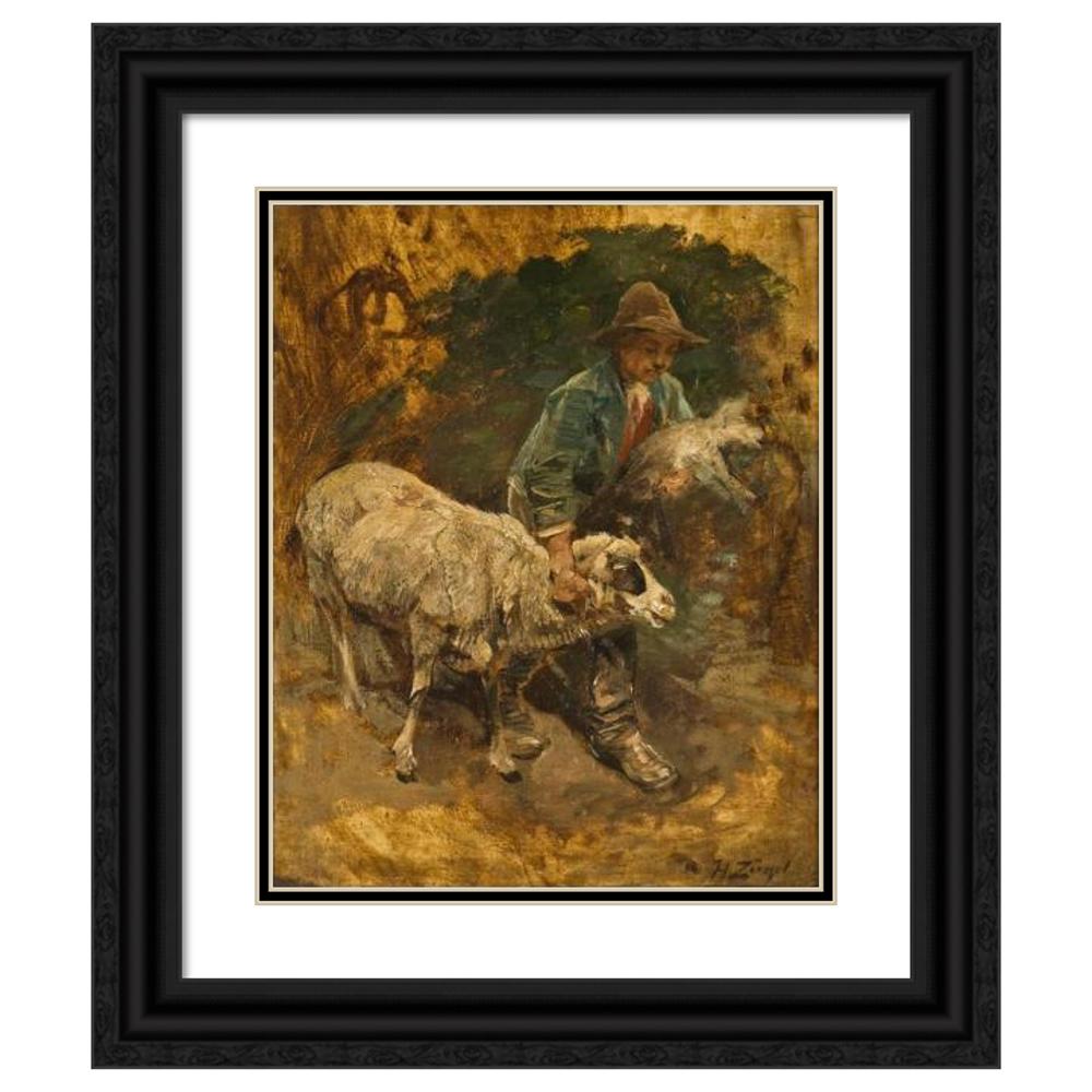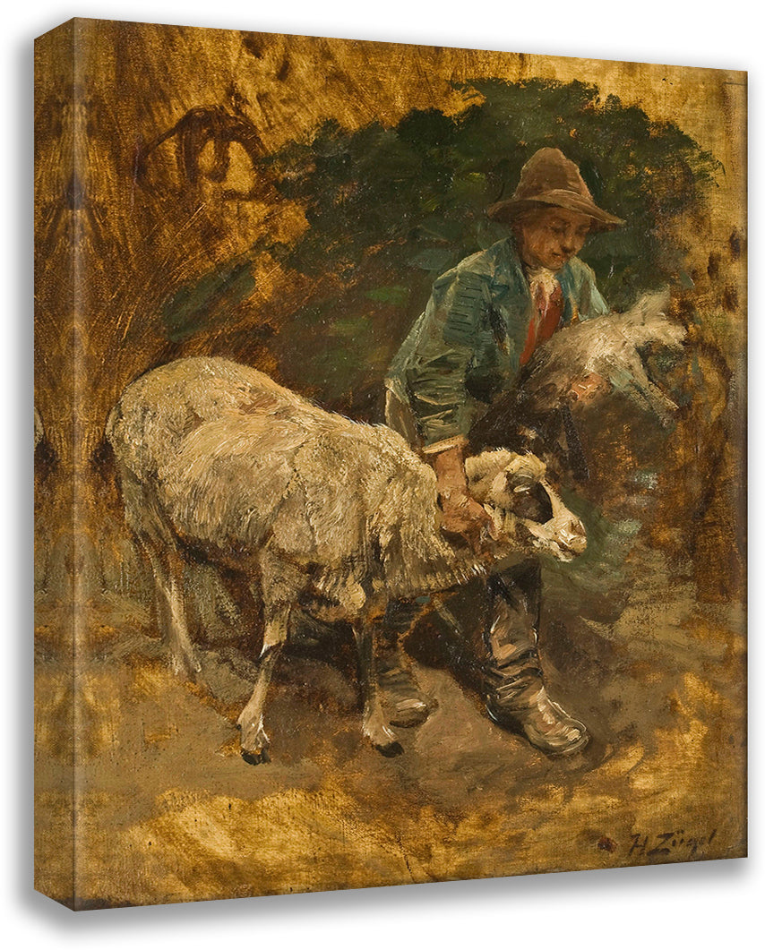 A Shepherd Boy with a Lambkin and a Sheep