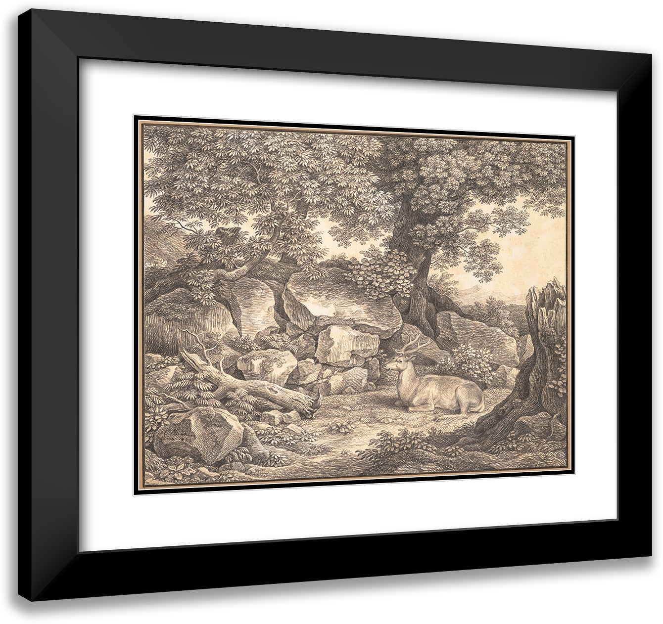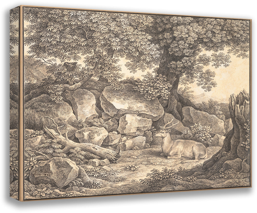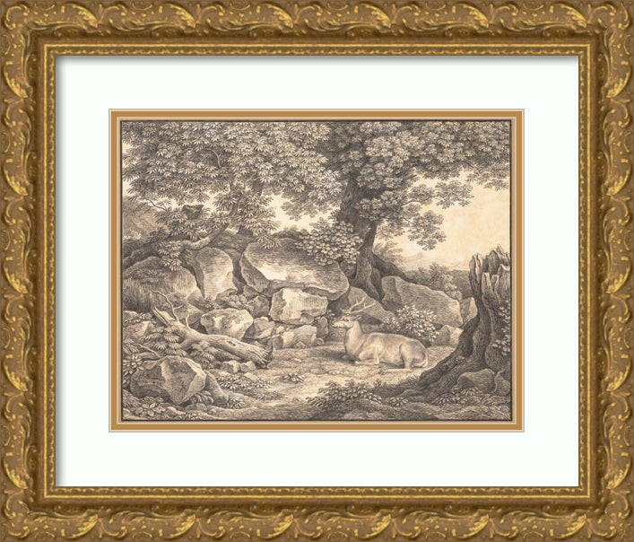 Italian Landscape with Trees, Rocks and a Resting Deer (1824)
