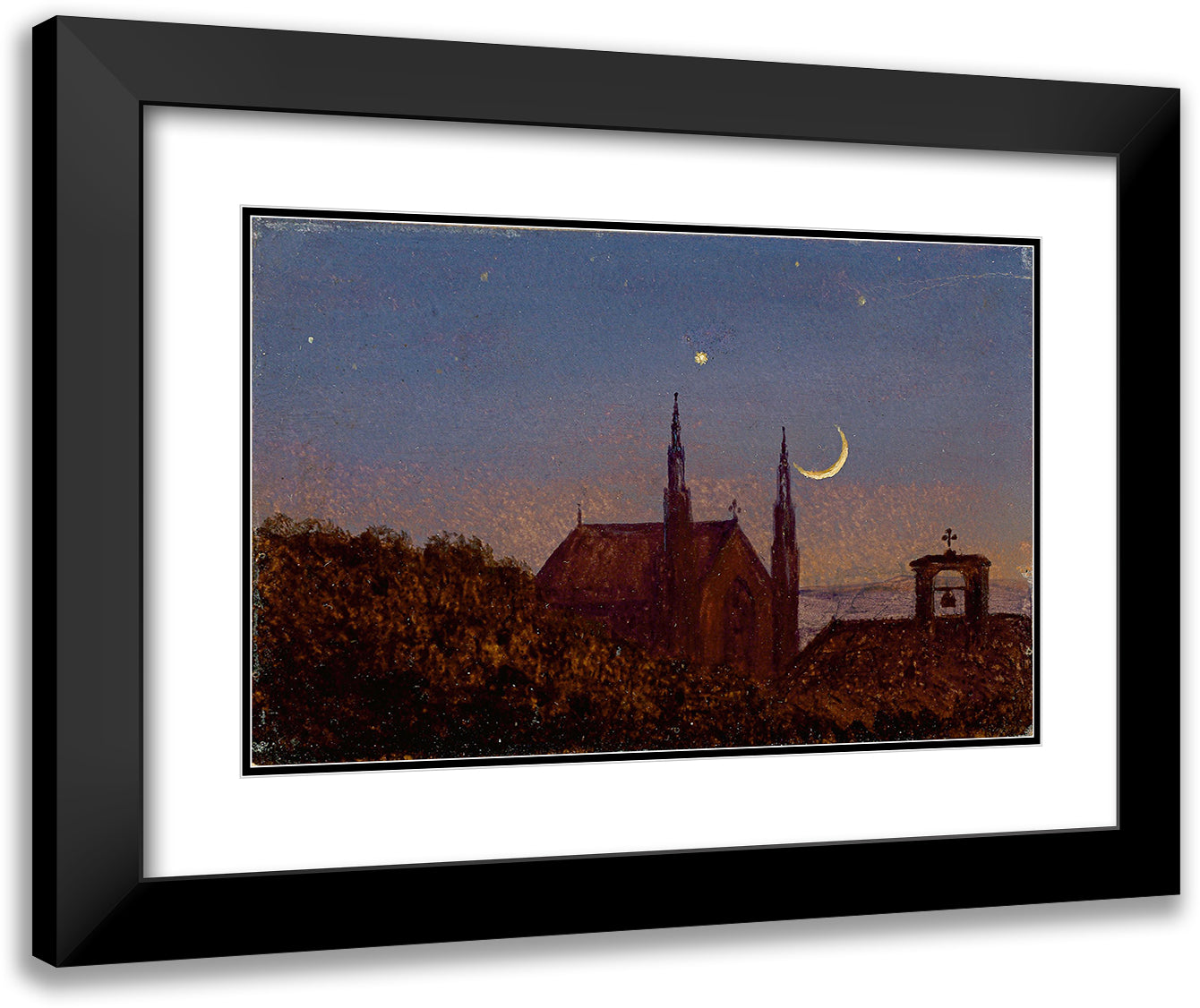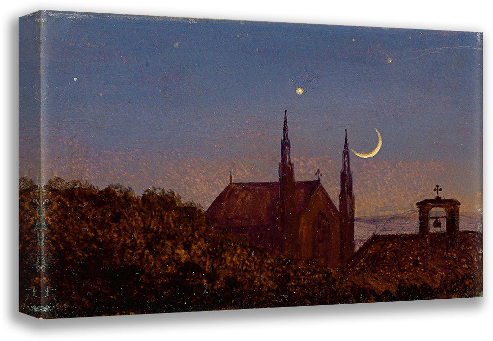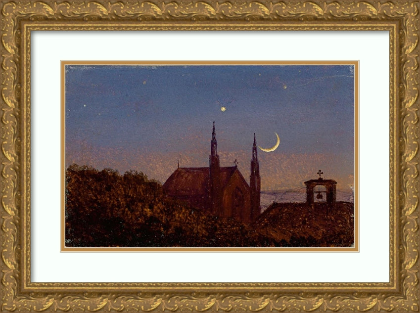 / Gothic Church Over Tree Tops in Moonlight (Small Moonlight Landscape with Little Church) (Around 1840)