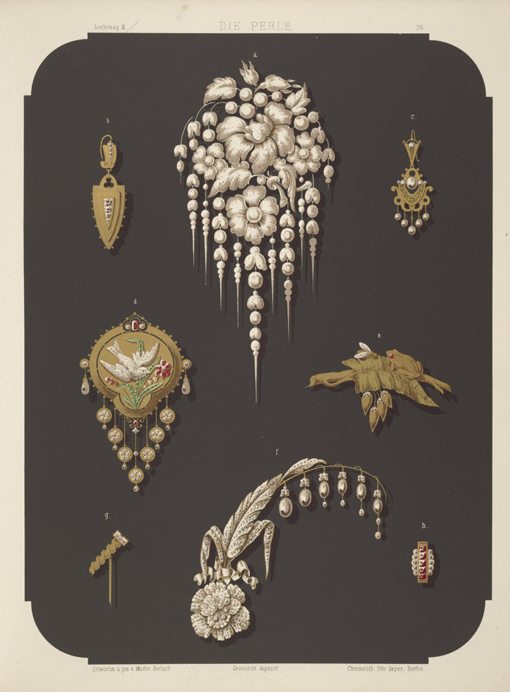 / Eight Designs for Jewelry, Including Large Pin with Pearls and Flowers. (1872 - 1873)