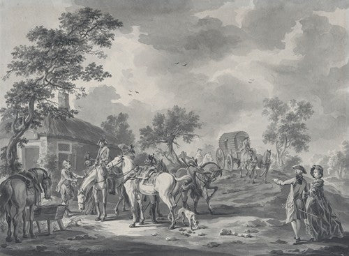 A Gathering of Horsemen and a Coach Near a Watering Place (1776)